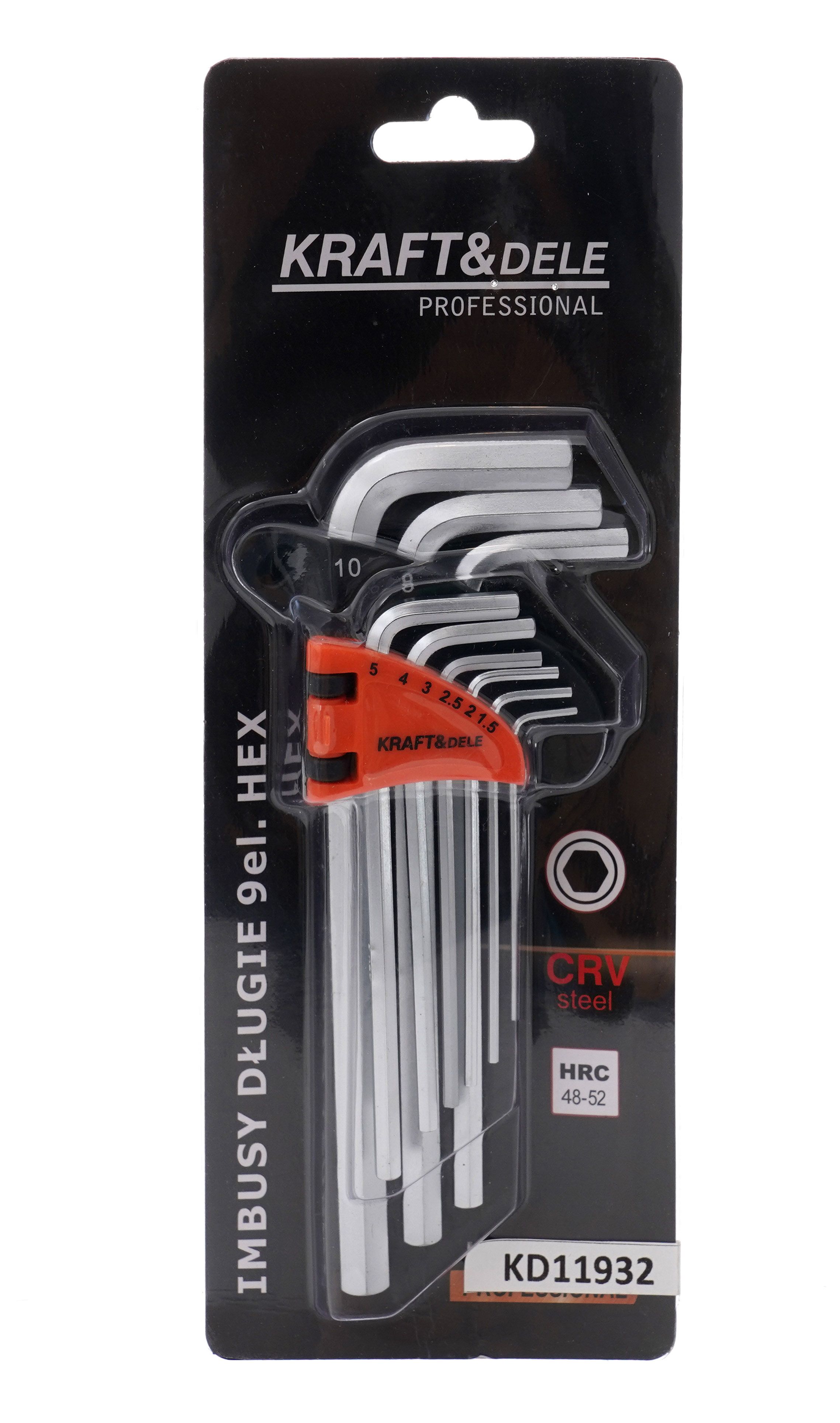 ZESTAW IMBUSÓW HEX KD11932 to praktyczny komplet kluczy imbusowych do pracy ze śrubami typu HEX w warsztacie i podczas montażu. Wykonanie ze stali CRV oraz twardość 48–52 HRC zapewniają stabilną pracę i długą żywotność w codziennym użyciu.