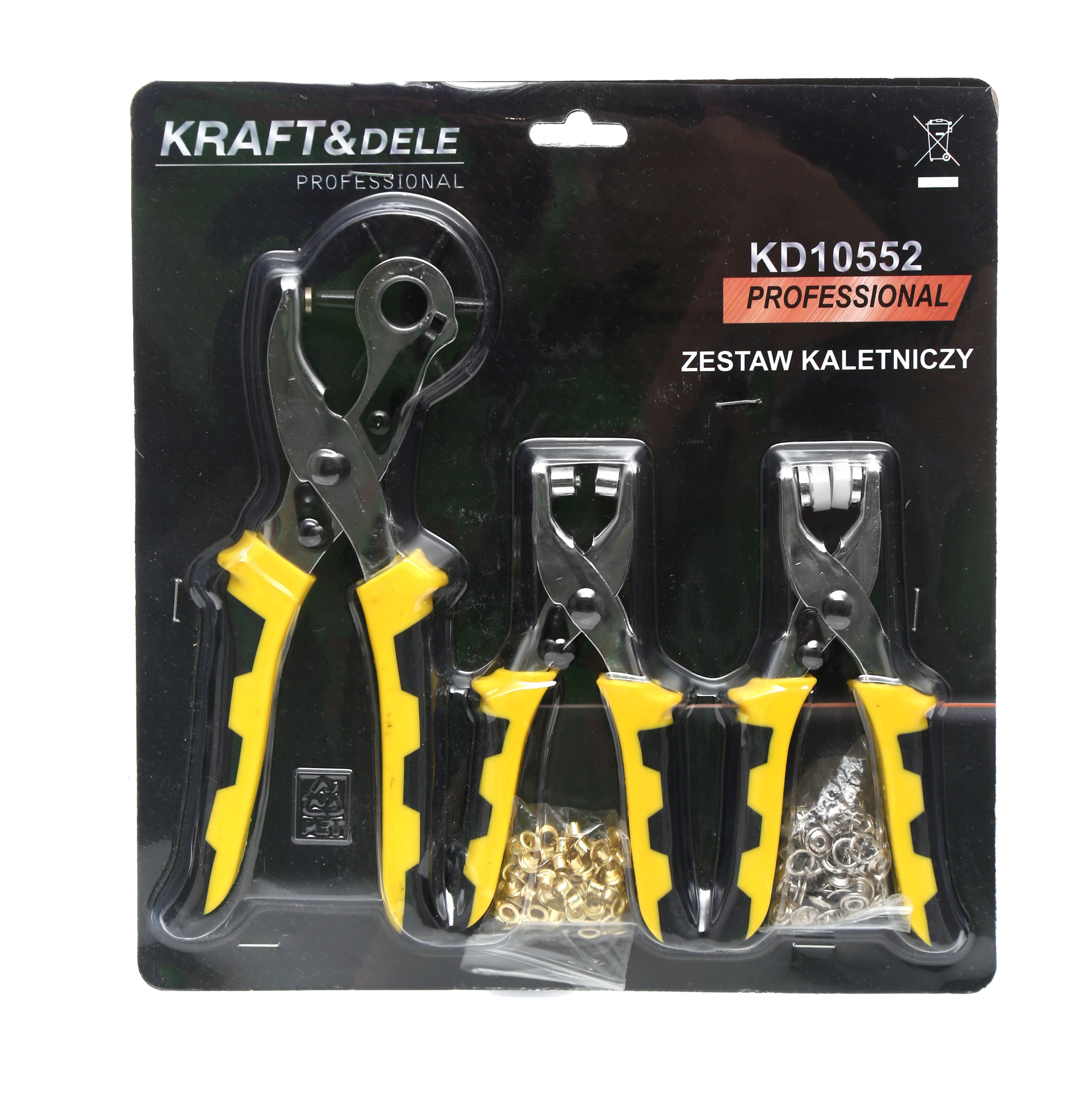 Zestaw kaletniczy 3 części KD10552 / KD10552 / KRAFT&DELE to praktyczny komplet szczypiec i akcesoriów do dziurkowania oraz montażu oczek i nap. Jeśli szukasz narzędzi do szybkich napraw i przeróbek w skórze, tekstyliach i galanterii, ten zestaw kaletniczy będzie rozsądnym wyborem do warsztatu i domu.