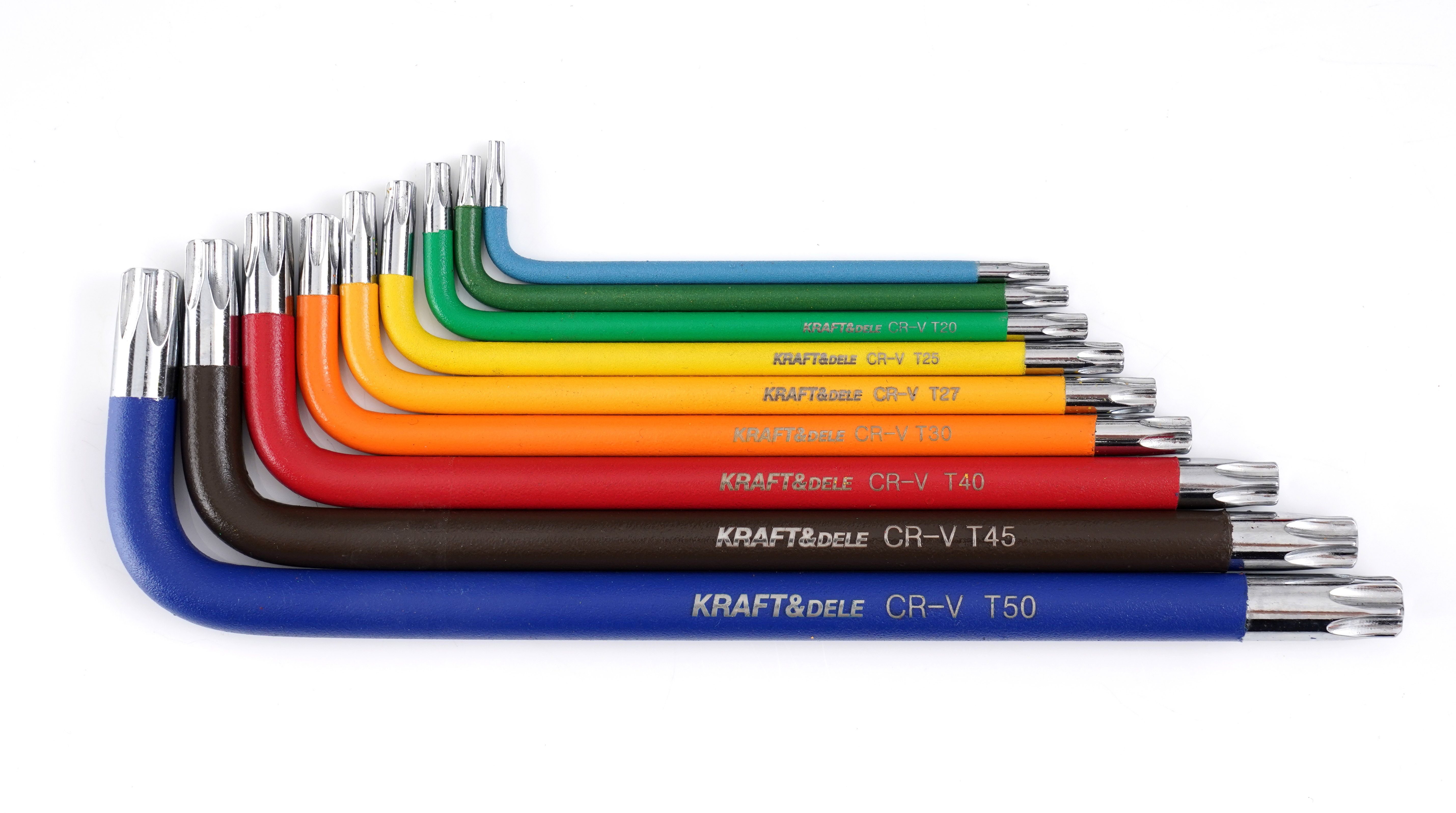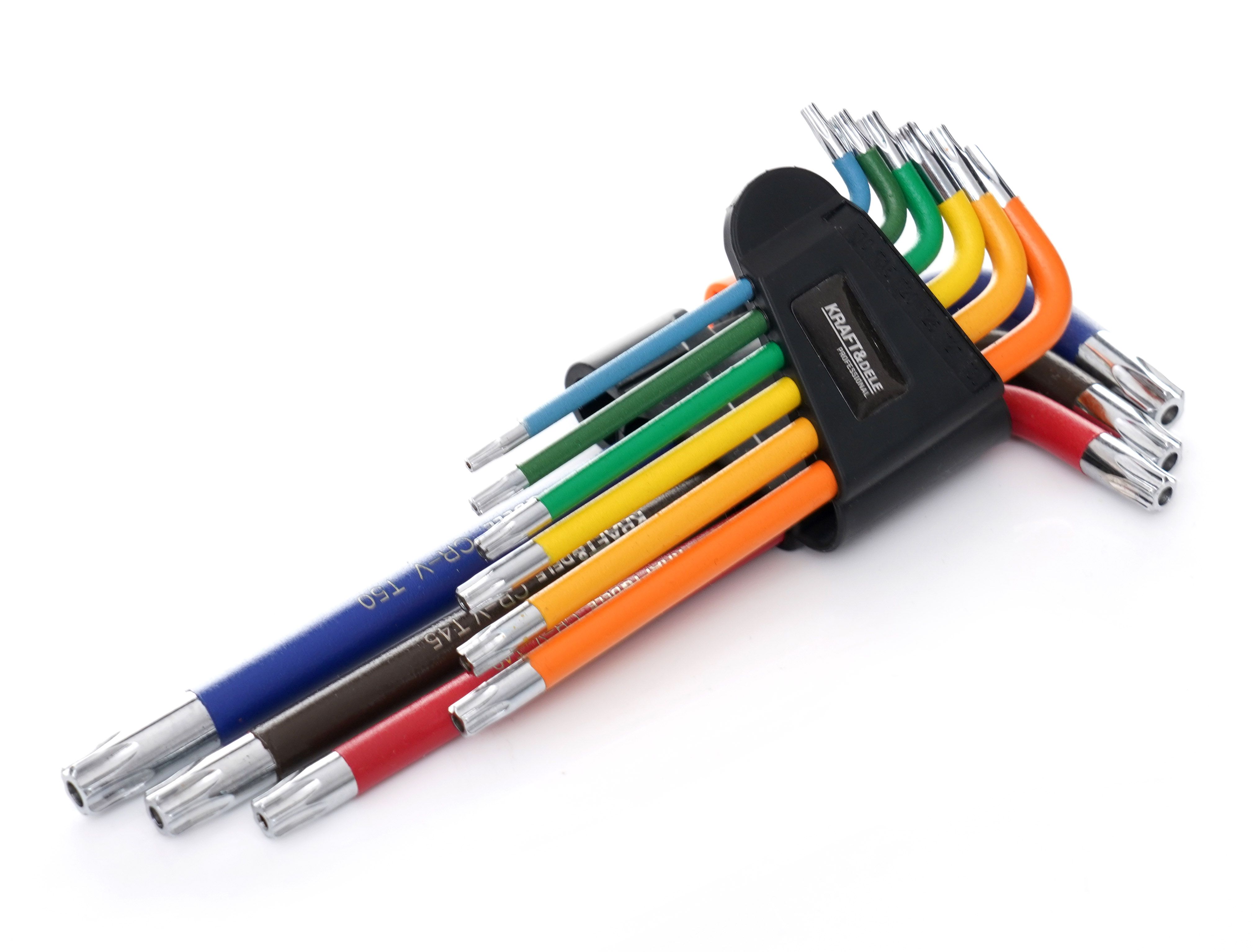 ZESTAW KOLOROWYCH IMBUSÓW TORX 9 EL. KD11930 / KD11930 / KRAFT&DELE to praktyczny komplet kluczy TORX z końcówką z otworem, dopasowaną do śrub typu TORX. Sprawdzi się w codziennym serwisie, gdy liczy się szybki dobór rozmiaru, pewne trzymanie wkręta i porządek w narzędziach.