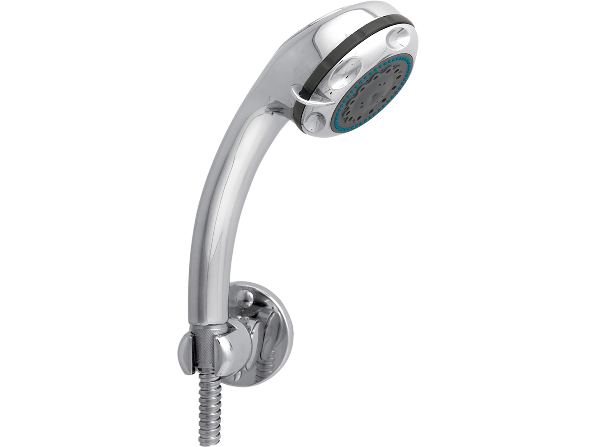 Zestaw łazienkowy 75556 składa się z trwałej i solidnej słuchawki prysznicowej, węża prysznicowego oraz uchwytu na słuchawkę prysznicową. Słuchawka prysznicowa posiada standardowy gwint G1/2 ", wykonana z tworzywa sztucznego ABS pokrytego chromem, posiada 5 funkcji. Gumowe kanaliki zapobiegają gromadzeniu się kamienia. Wąż prysznicowy został wykonany ze stali nierdzewnej, posiada pojedynczy oplot, długość 150 cm oraz standardowy gwint G 1/2 ". Drążek prysznicowy wykonany ze stali nierdzewnej. Uchwyt na słuchawkę zostł wykonany z tworzywa sztucznego ABS pokrytego chromem. Wszystkie zastosowane powłoki są twarde i wytrzymałe na działanie wilgoci.