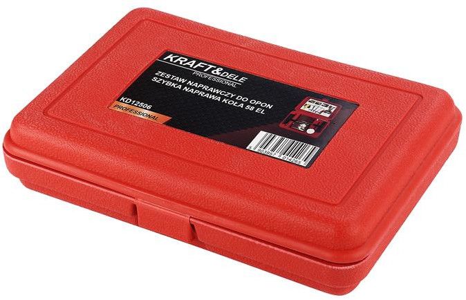 ZESTAW NAPRAWCZY DO OPON 58ELEMENTÓW KD12506 / KD12506 / KRAFT&DELE to praktyczny zestaw naprawczy do opon do doraźnego uszczelniania przebić w oponach tubeless. Jeśli szukasz kompletnego rozwiązania w walizce do warsztatu lub do bagażnika, model KD12506 będzie rozsądnym, funkcjonalnym wyborem.