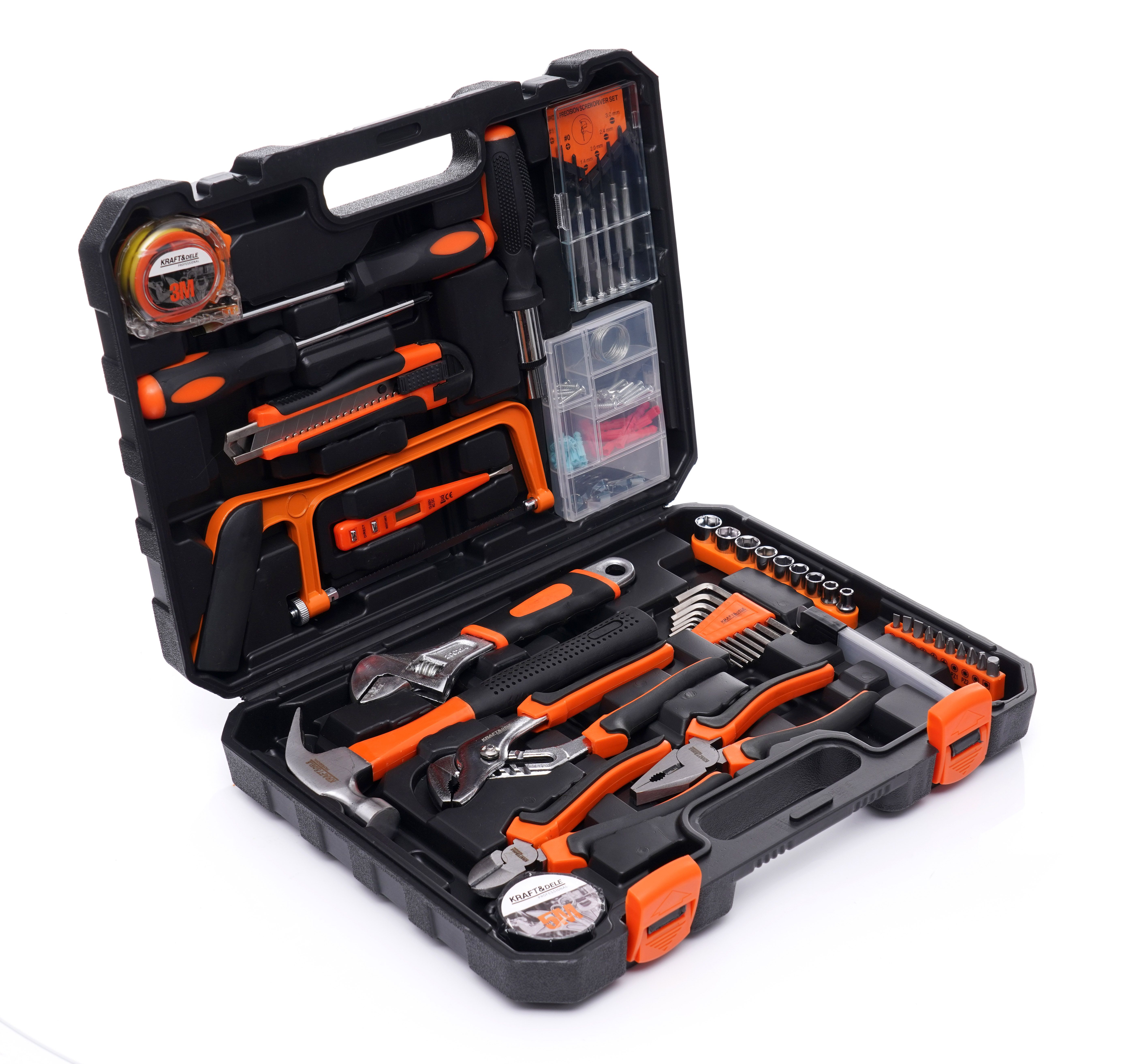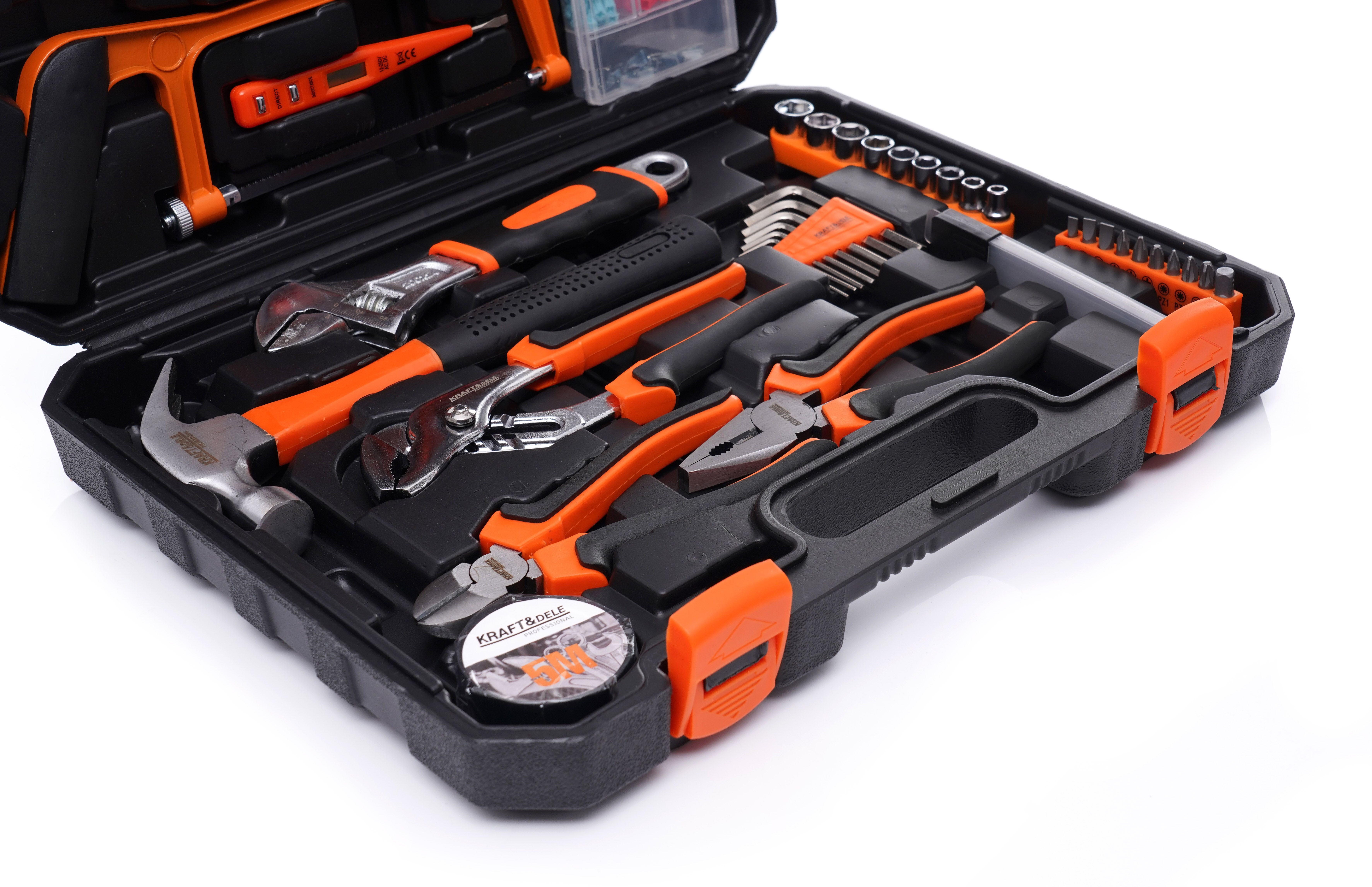 Zestaw narzędzi 100el. KD10839 / KD10839 / KRAFT&DELE sprawdzi się tam, gdzie liczy się szybki dostęp do podstawowych narzędzi i porządek w wyposażeniu. To dobry wybór do mieszkania, domu, garażu, a także jako zestaw do auta lub na działkę.