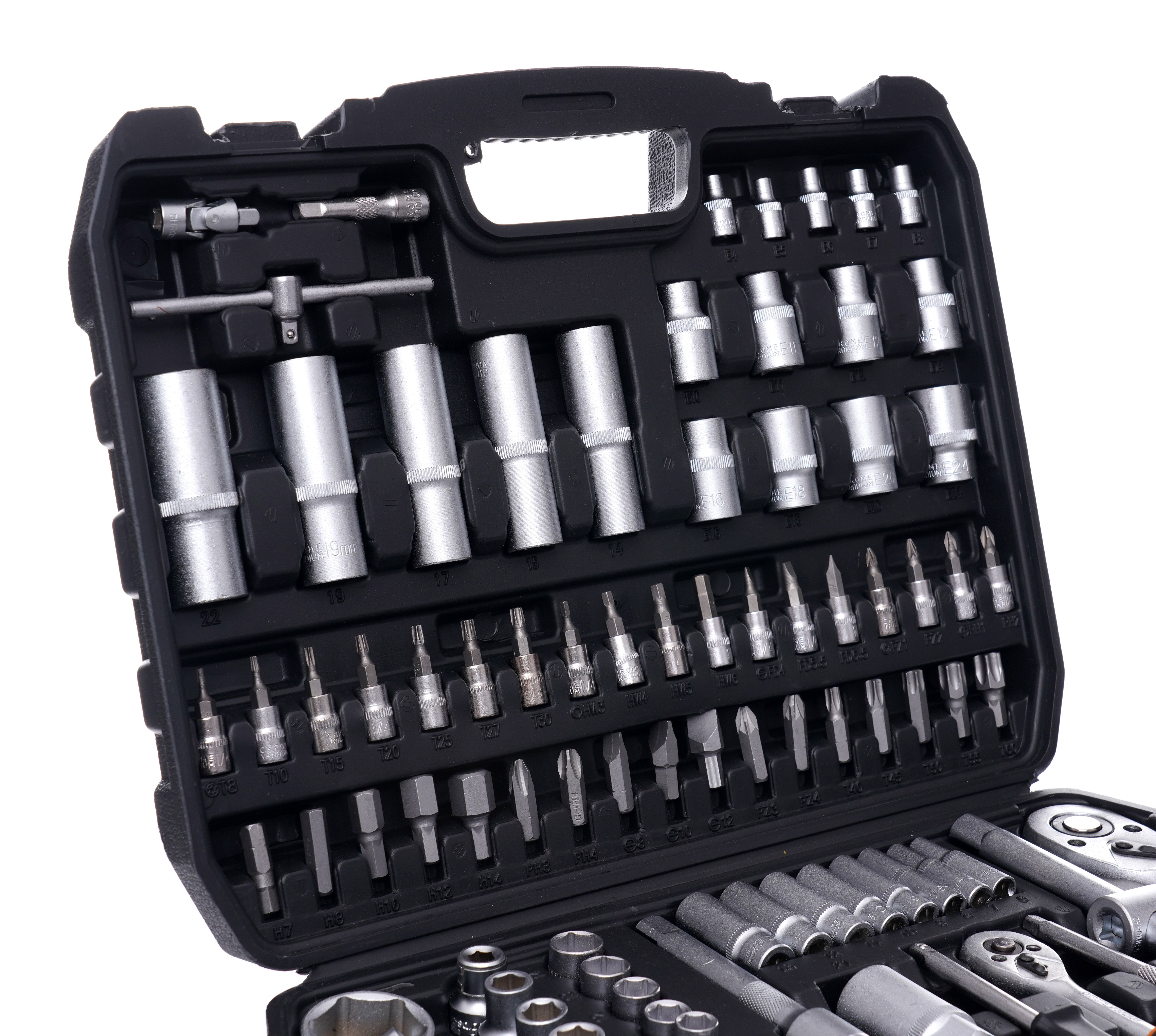 W zestawie są nasadki, bity, grzechotki, przeguby i przedłużki, więc łatwiej dopasować konfigurację do dostępu i rodzaju połączenia.