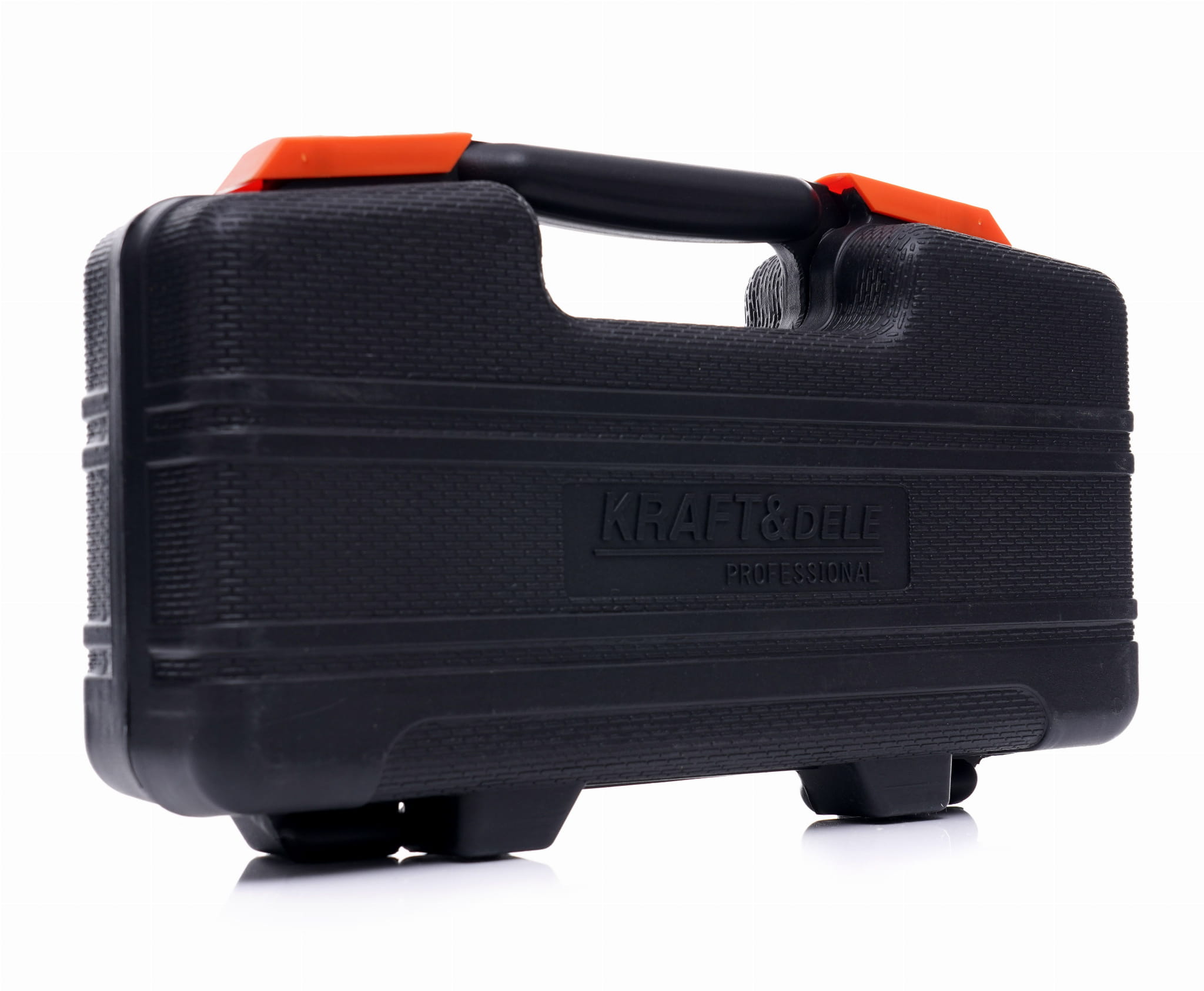 Walizka z tworzywa sztucznego posiada formowane gniazda dla każdego elementu zestawu. Rozwiązanie ułatwia szybką identyfikację rozmiaru i kontrolę kompletności zestawu po zakończeniu pracy.