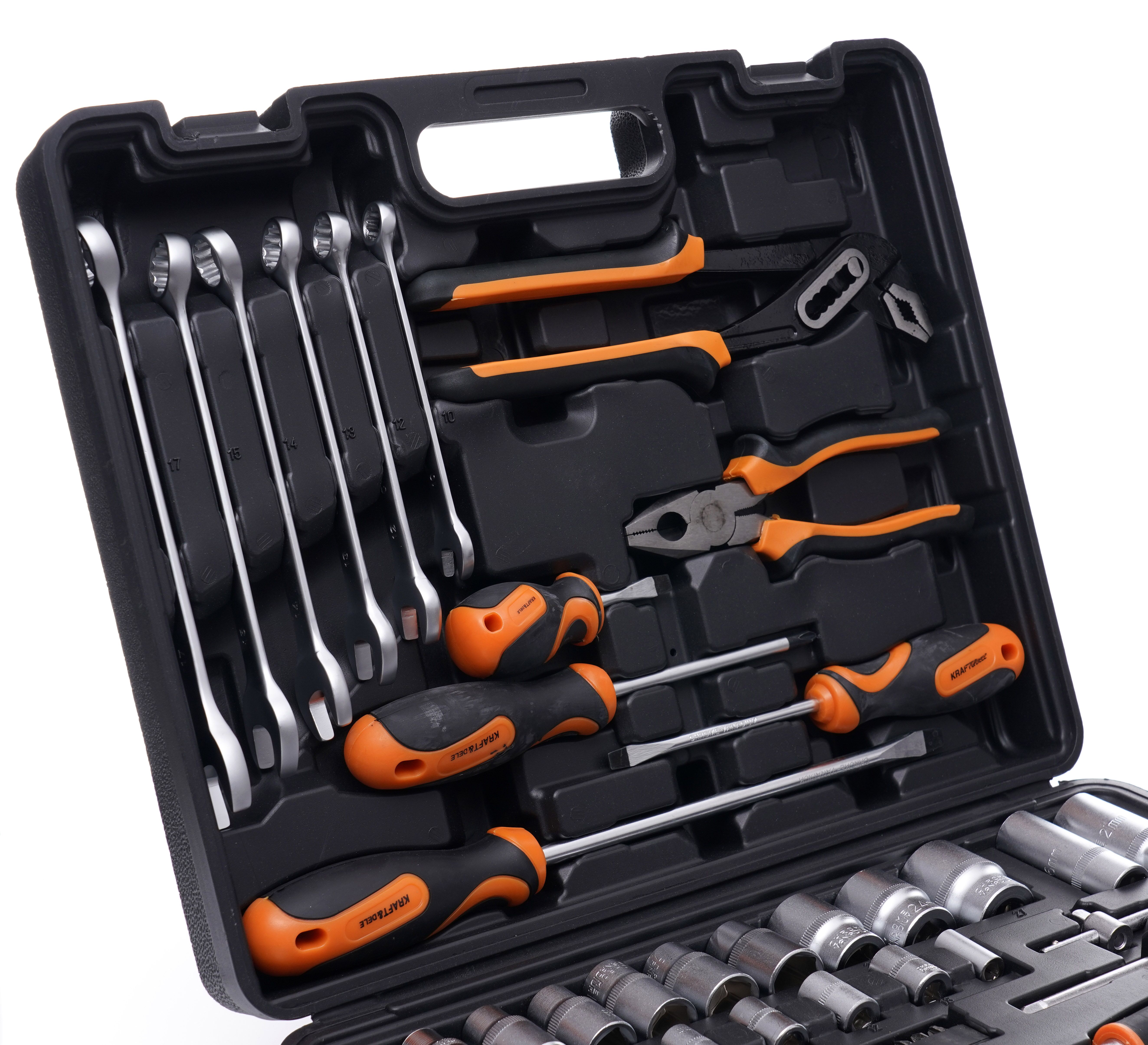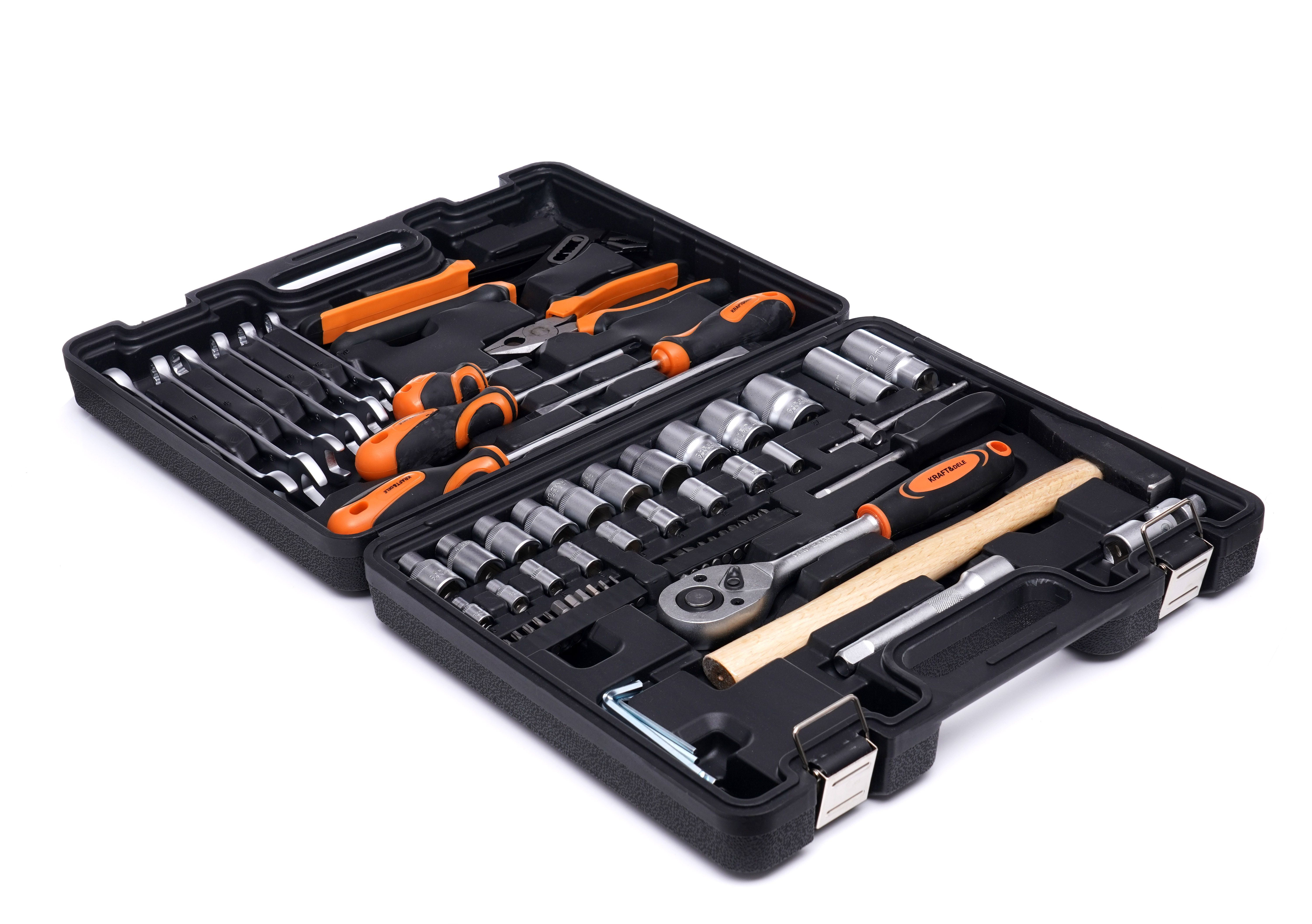 Zestaw narzędzi 66el. KD10468 / KRAFT&DELE to praktyczny komplet do bieżących napraw, montażu i serwisu. Narzędzia z utwardzanej stali chromowo-wanadowej (CrV) oraz walizka z miejscem na każdy element ułatwiają pracę i utrzymanie porządku.