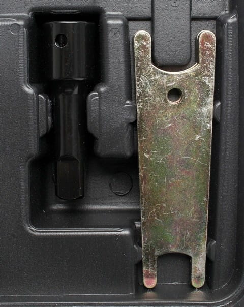 Dołączona przedłużka do gniazda 1/2" pozwala na obsługę śrub i nakrętek w zagłębieniach, komorach silnikowych lub innych miejscach, gdzie standardowy klucz udarowy nie może być bezpośrednio przyłożony.