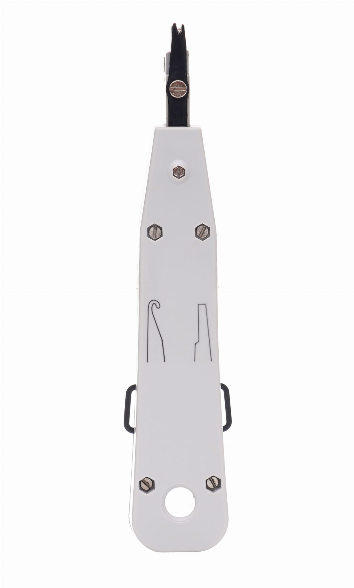 Narzędzie do terminowania przewodów na złączach typu LSA (Krone), stosowanych w panelach krosowniczych i gniazdach keystone. Wbudowana obcinaczka usuwa nadmiar kabla podczas wciskania. Wyciągacz umożliwia demontaż wcześniej zainstalowanych przewodów bez uszkodzenia złącza.