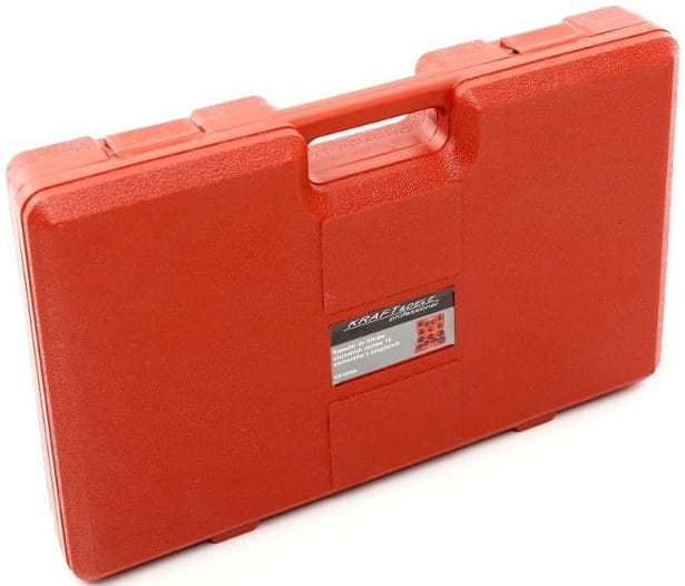 Zestaw dostarczany jest w wytrzymałej walizce z wyprofilowanymi gniazdami na każdy element. Ułatwia to przechowywanie, szybką identyfikację potrzebnej nasadki oraz transport między stanowiskami pracy.