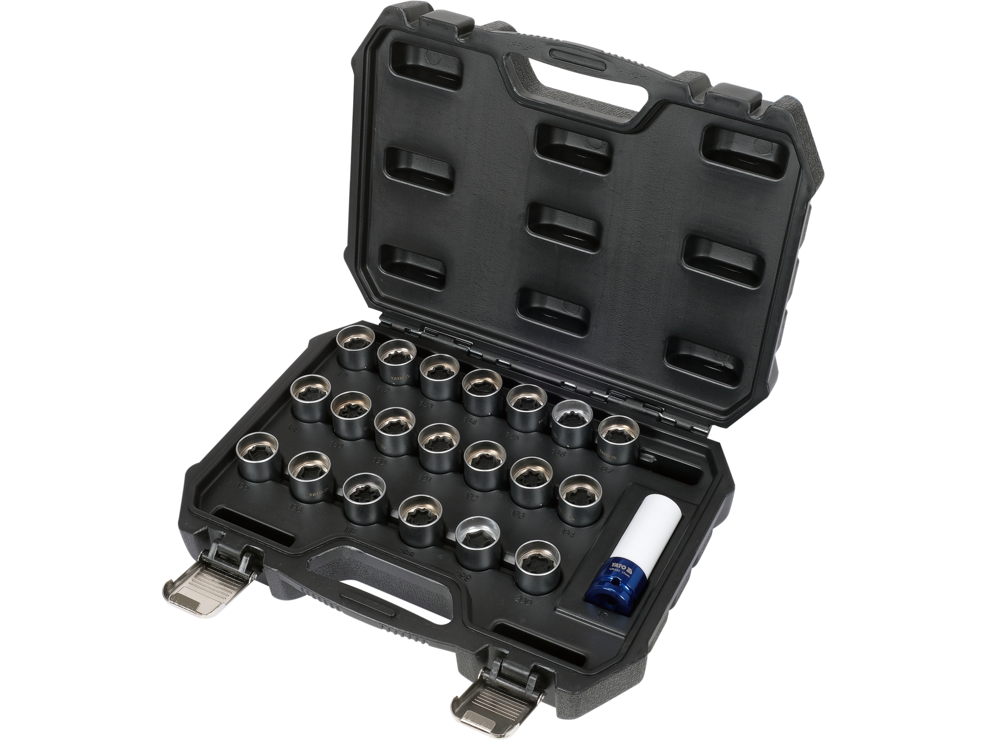 Zestaw nasadek YATO YT-060306 składa się z 21 elementów wykonanych z wysokiej jakości stali CrMo (chromowo-molibdenowej), co zapewnia ich dużą wytrzymałość i odporność na obciążenia. Powierzchnia nasadek została poddana procesowi oksydowania, co zwiększa ich odporność na korozję i uszkodzenia mechaniczne. Rozmiar uchwytu narzędziowego wynosi 1/2" (12.7 mm), co jest standardem w branży i gwarantuje kompatybilność z większością dostępnych na rynku kluczy i grzechotek.