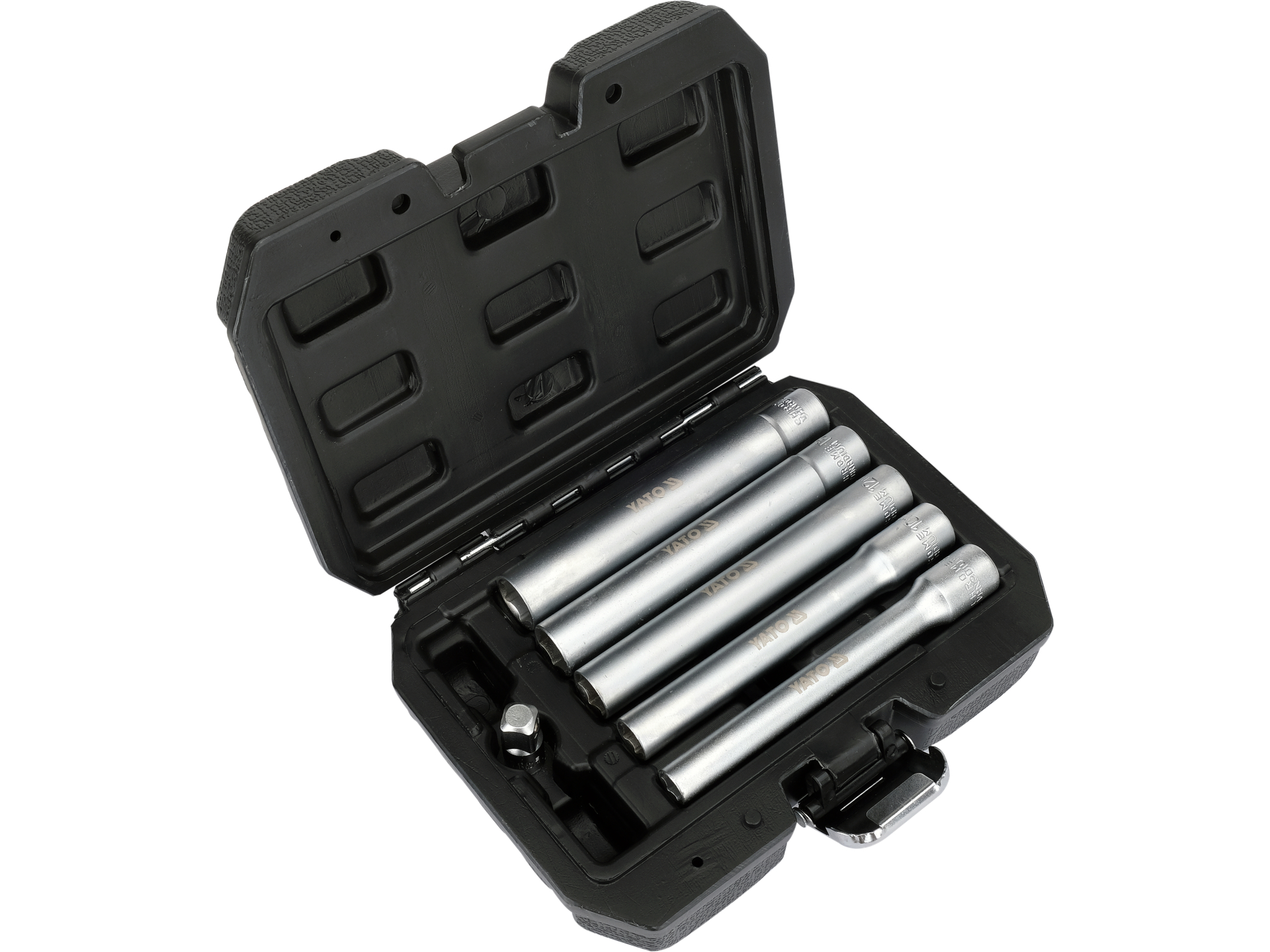 Profesjonalny zestaw 6 elementów z nasadkami długimi 120 mm do pracy w głęboko osadzonych punktach mocowania. Wykonane ze stali chromowo-wanadowej CrV, zaprojektowane do zastosowań w mechanice samochodowej i serwisach technicznych, gdzie standardowe nasadki nie zapewniają wystarczającego zasięgu.
