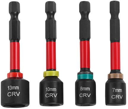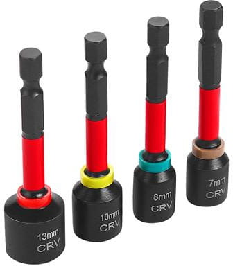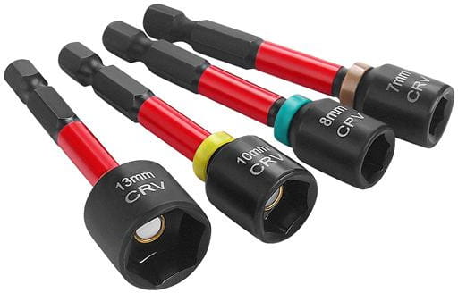 Komplet czterech nasadek z wbudowanym magnesem, przeznaczonych do wkrętarek i wiertarek z uchwytem sześciokątnym 1/4". Nasadki wykonano ze stali utwardzanej i wyposażono w magnes wewnętrzny, który utrzymuje śrubę w pozycji roboczej bez konieczności jej przytrzymywania — szczególnie przydatne podczas pracy w ograniczonej przestrzeni lub nad głową.