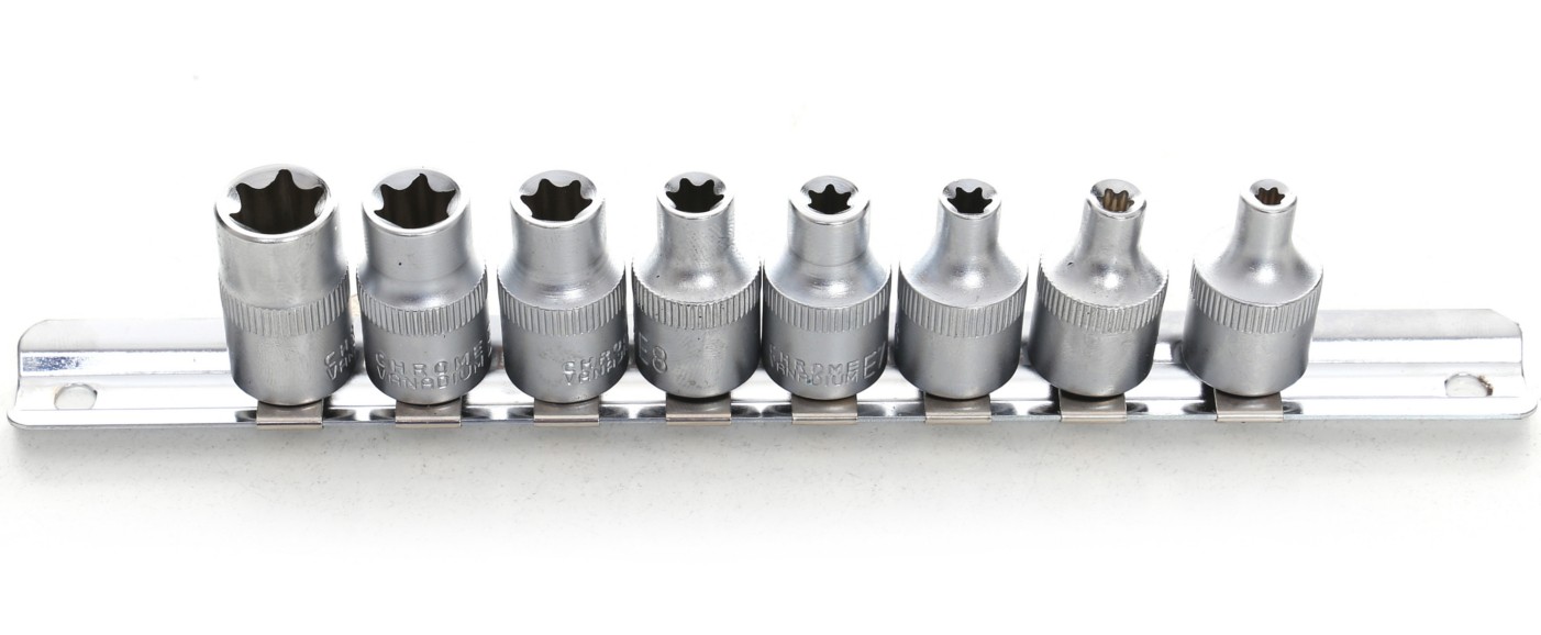 Materiał wspiera trwałość nasadek podczas regularnego użytkowania i utrzymuje stabilne dopasowanie do profilu E-Torx.
