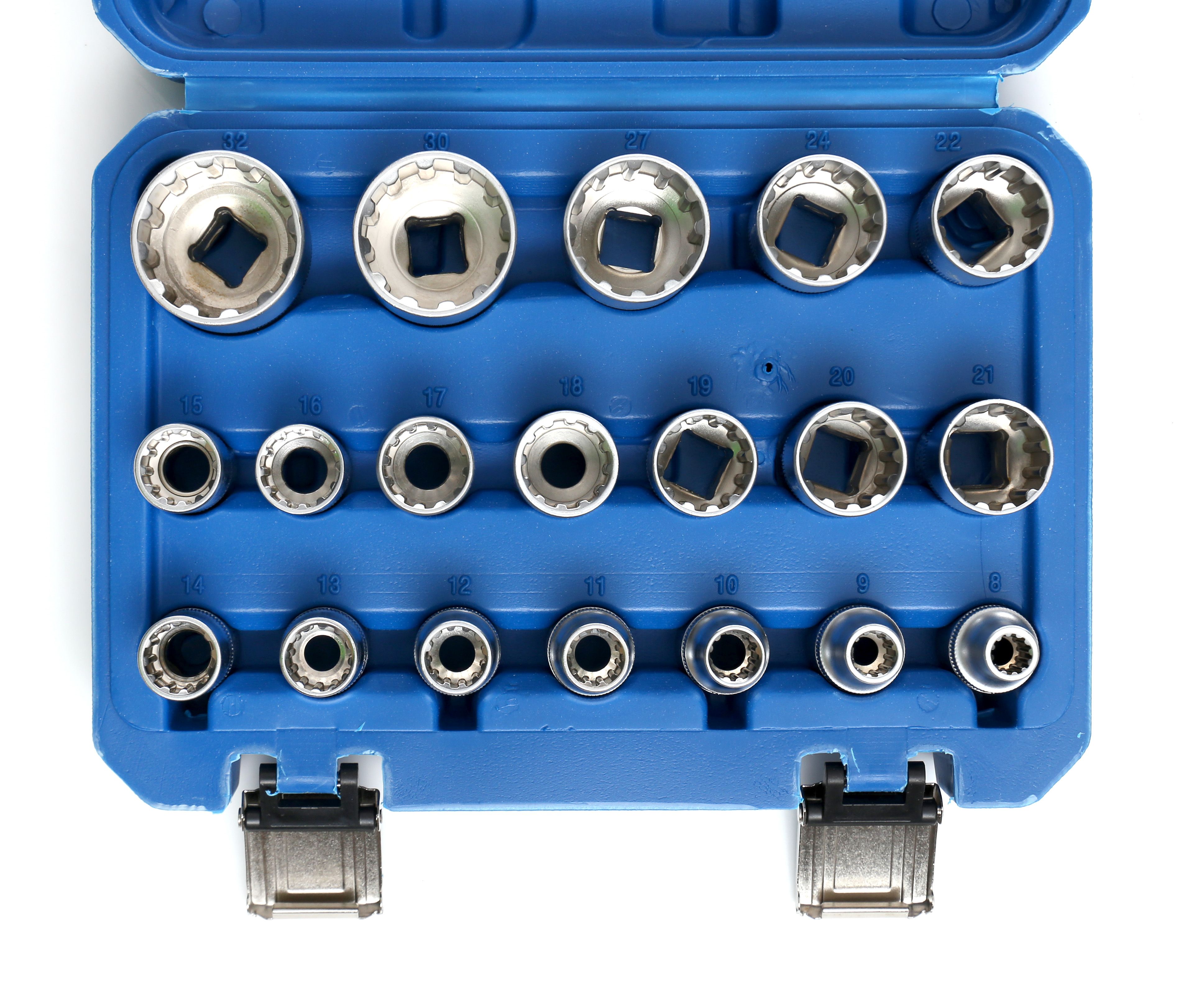 Komplet nasadek TORX w jednym miejscu ułatwia dobór właściwego elementu i skraca przestoje podczas napraw.