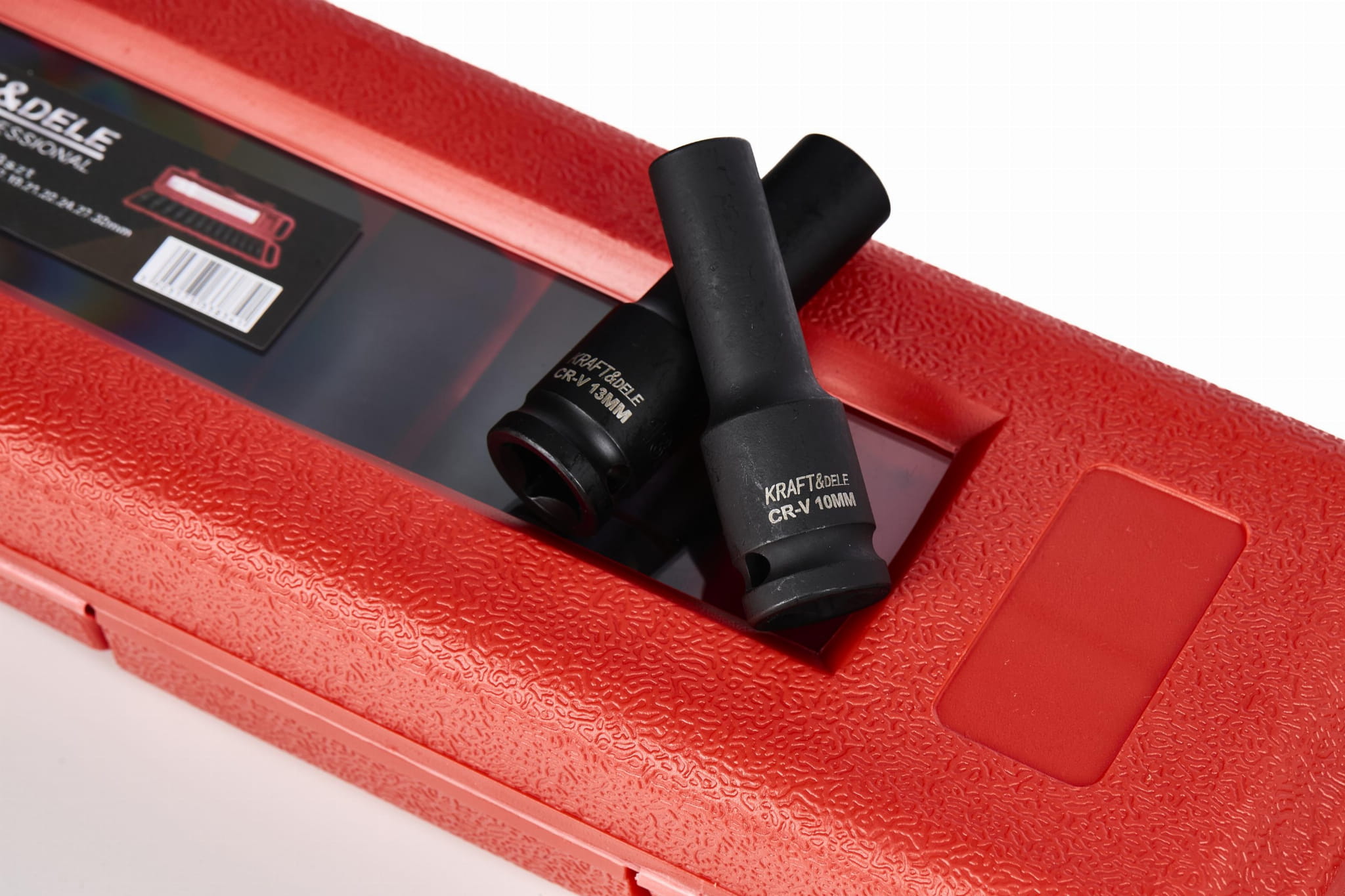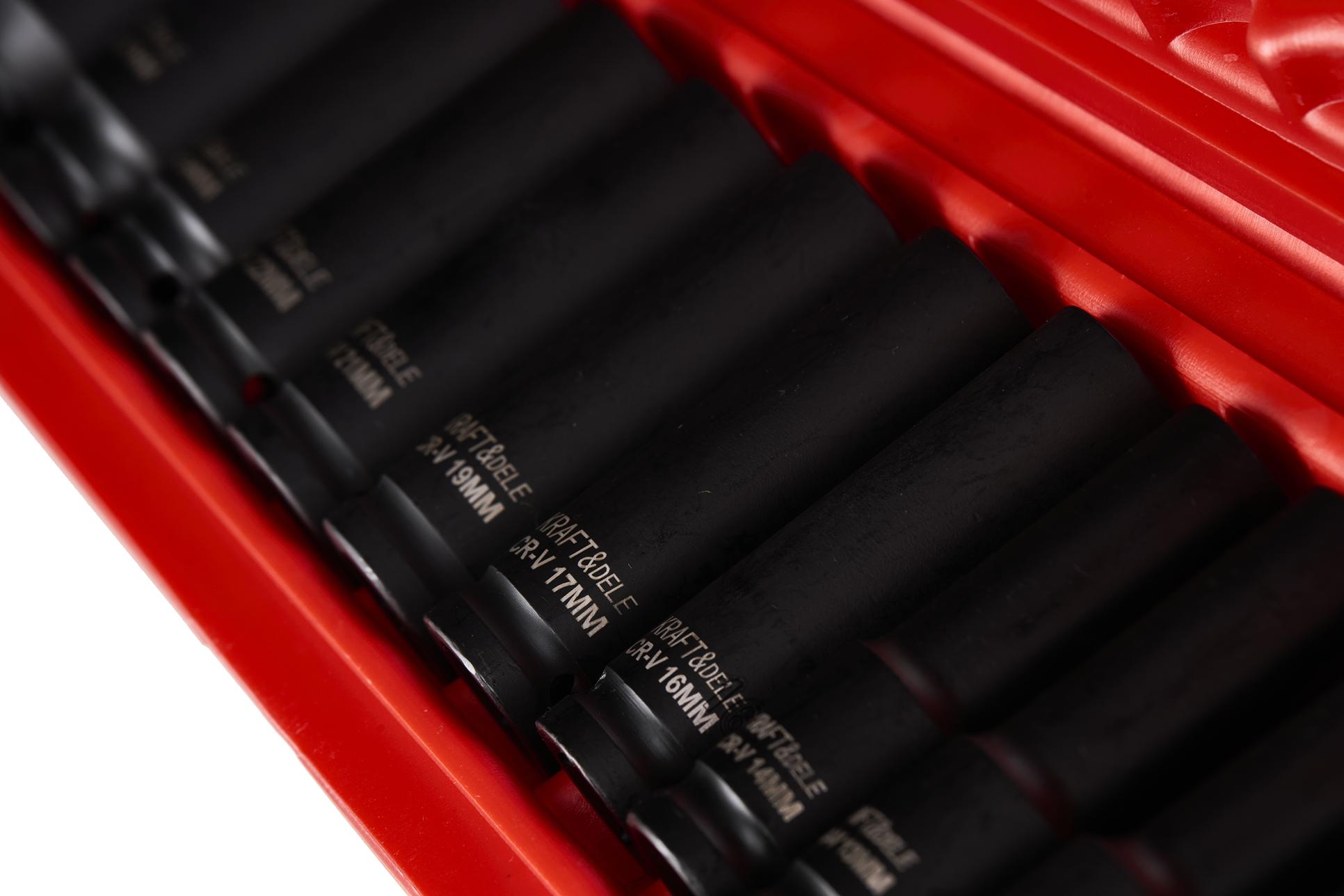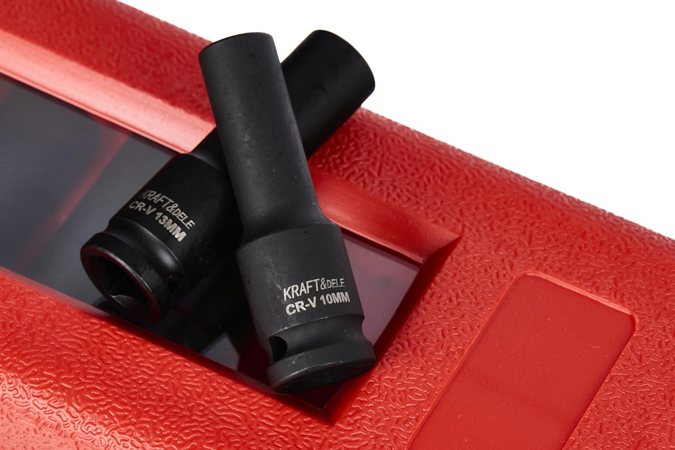 Przed zakupem należy zweryfikować rozmiar kwadratu napędowego posiadanego klucza udarowego lub grzechotki. Rozmiar 1/2" (ok. 12,7 mm) jest oznaczany na obudowie narzędzia lub w jego dokumentacji technicznej. Nasadki z tego zestawu nie są kompatybilne z napędami 3/8" ani 3/4" bez użycia redukcji.