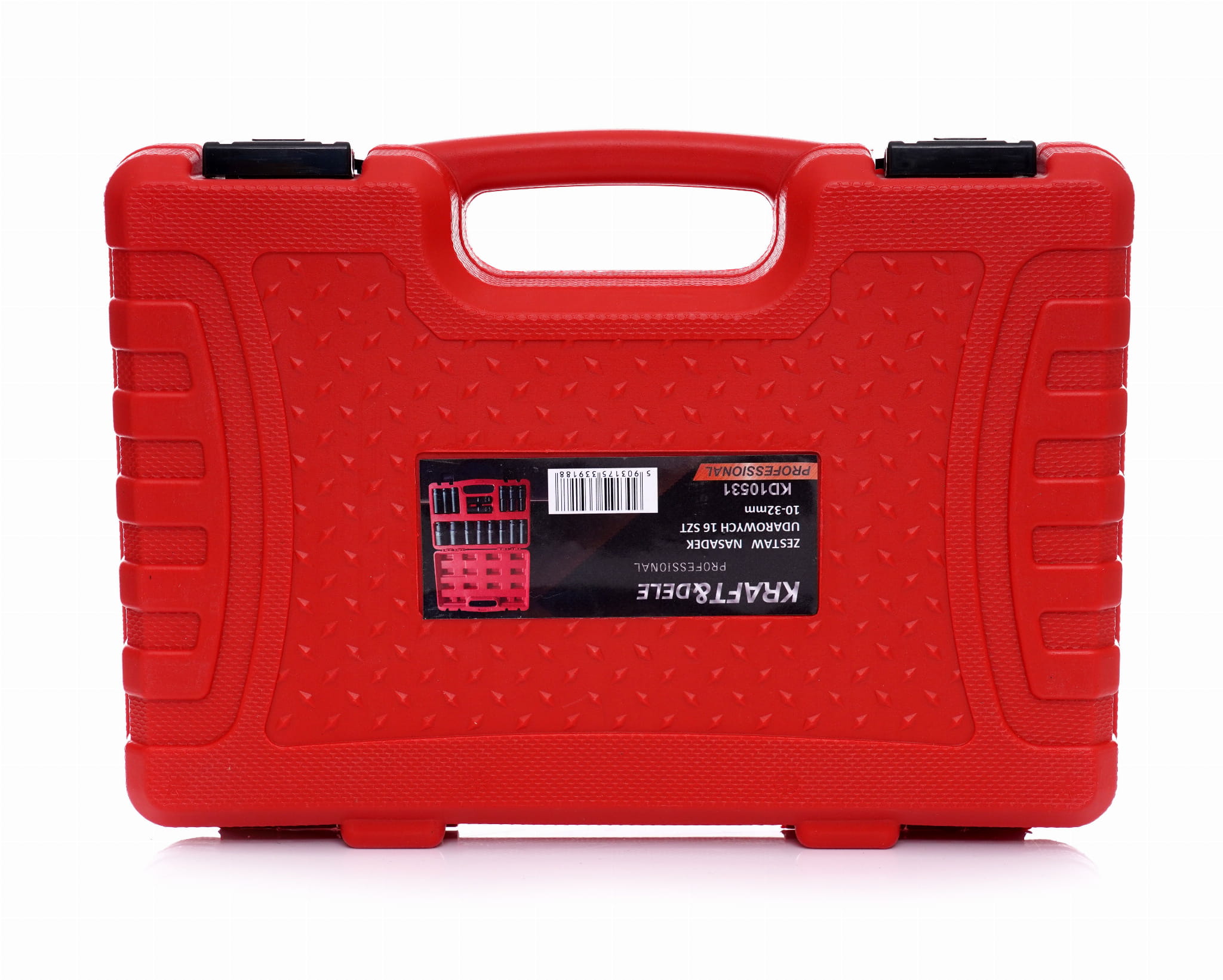 Nasadki dostarczane są w walizce z tworzywa sztucznego z dedykowanymi gniazdami dla każdej nasadki. Pozwala to na szybką identyfikację brakującego elementu i zabezpiecza narzędzia przed przemieszczaniem się podczas transportu.