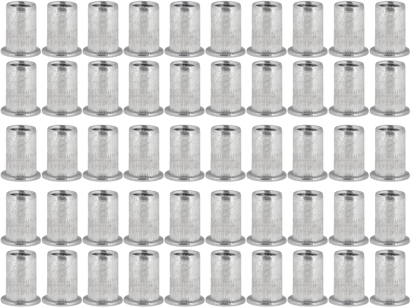 Płaski kołnierz opiera się na powierzchni materiału, równomiernie rozkładając siłę docisku podczas montażu. Ogranicza ryzyko wciągnięcia nitonakrętki przez otwór i zapewnia stabilną płaszczyznę oporową dla łączonego elementu.