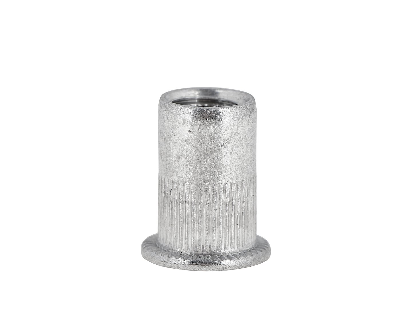 Podłużne rowki na powierzchni cylindrycznej części nitonakrętki wcinają się w materiał podczas zagniatania, blokując obrót elementu. Zapobiega to luzowaniu się połączenia podczas dokręcania śruby i zwiększa stabilność gwintu pod obciążeniem skrętnym.