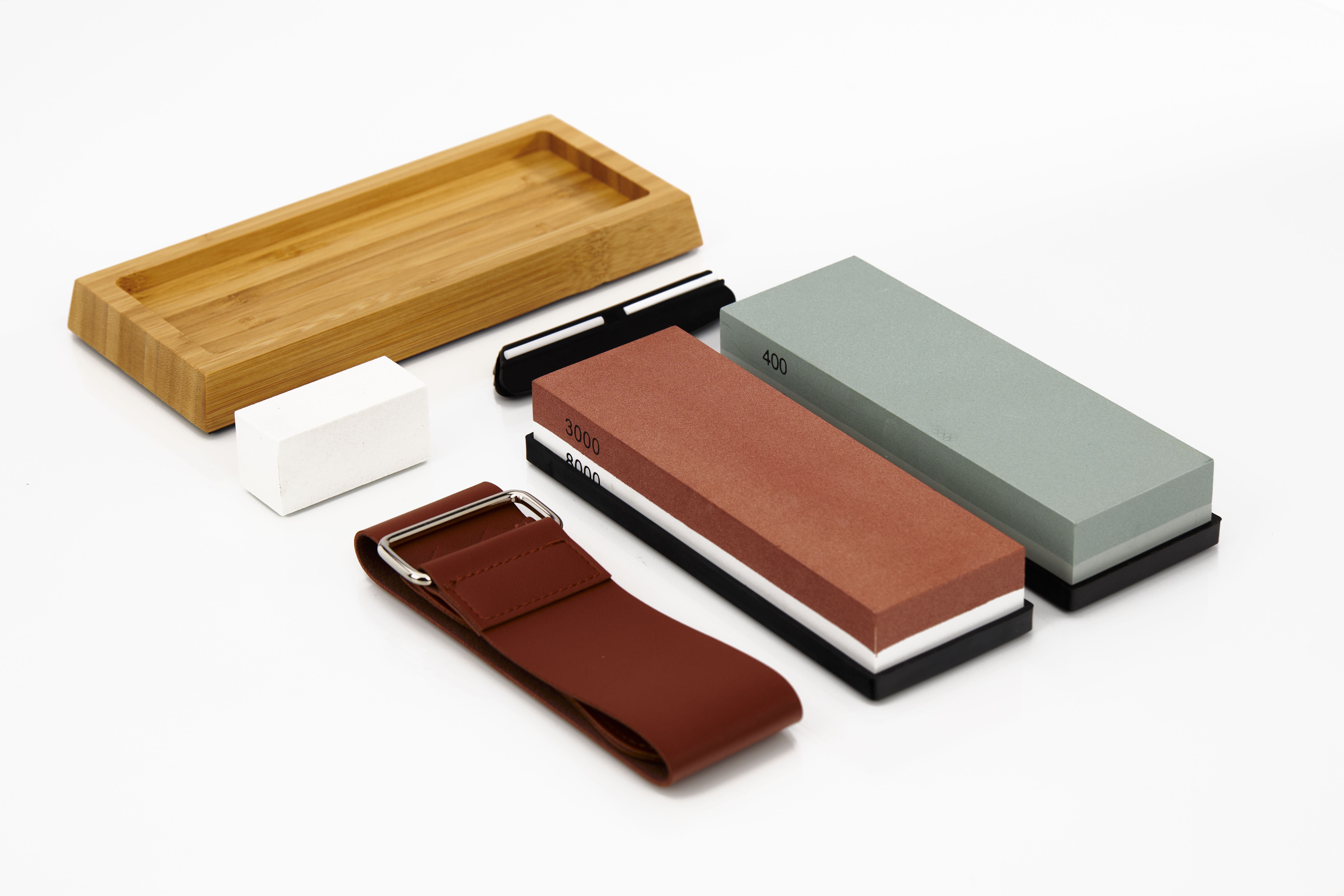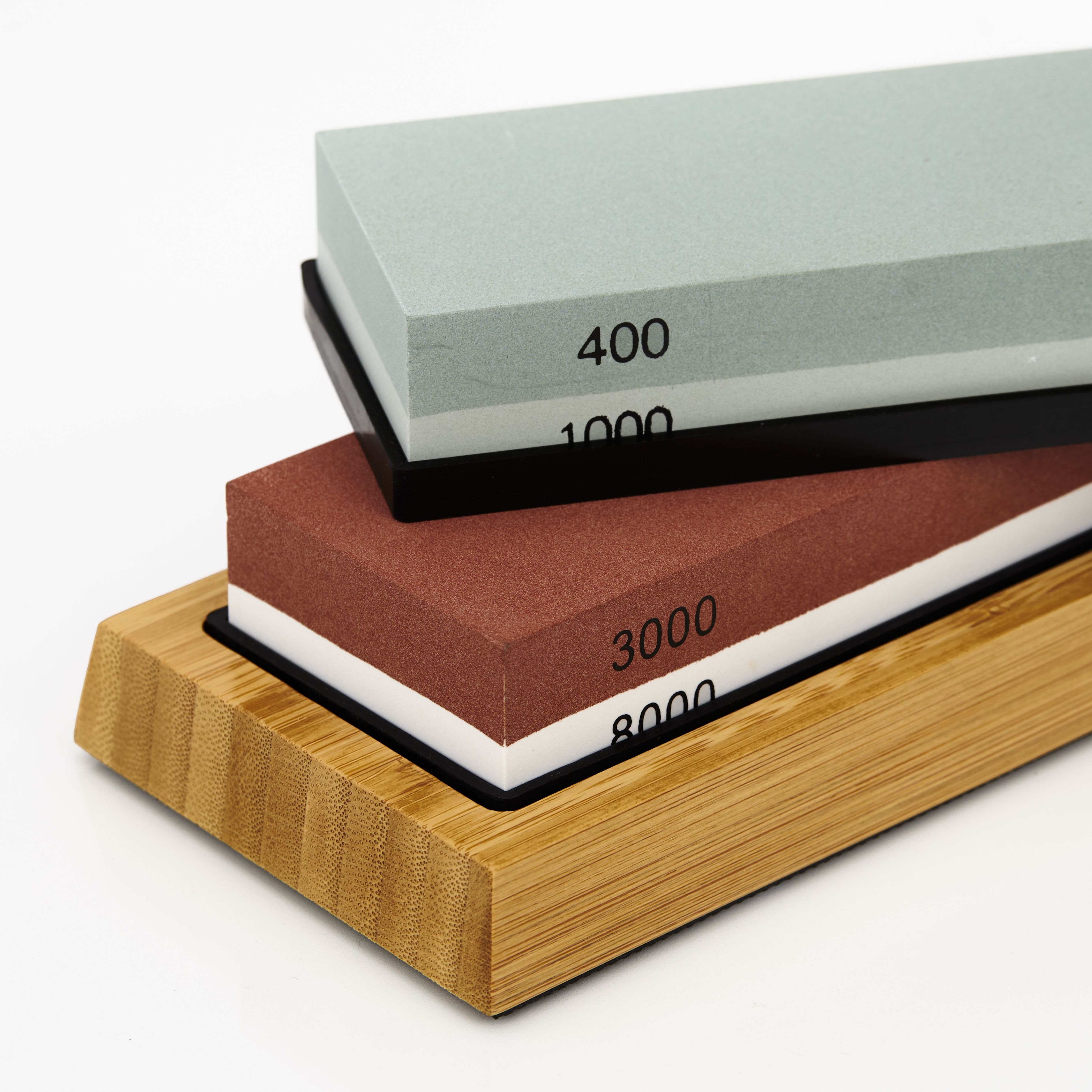 Bambusowa podstawka i antypoślizgowe podkładki pomagają utrzymać kamień na miejscu, co przekłada się na wygodniejsze i bezpieczniejsze ostrzenie.