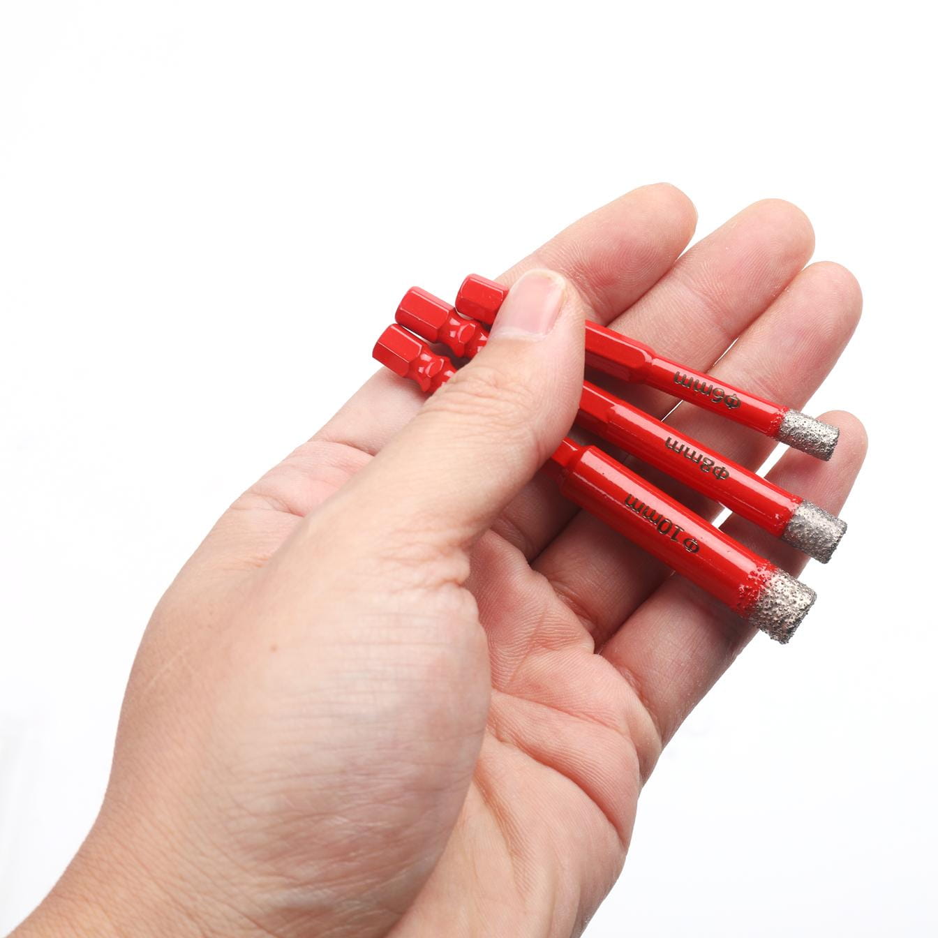 Zestaw trzech otwornic z nasypem diamentowym przeznaczonych do wiercenia w gresite, ceramice, lastryko i kamieniu syntetycznym. Narzędzia pracują na sucho dzięki wbudowanemu woskowi chłodzącemu, co eliminuje potrzebę stosowania zewnętrznego chłodzenia wodą. Uchwyt HEX zapewnia kompatybilność ze standardowymi wiertarkami i wkrętarkami udarowymi.