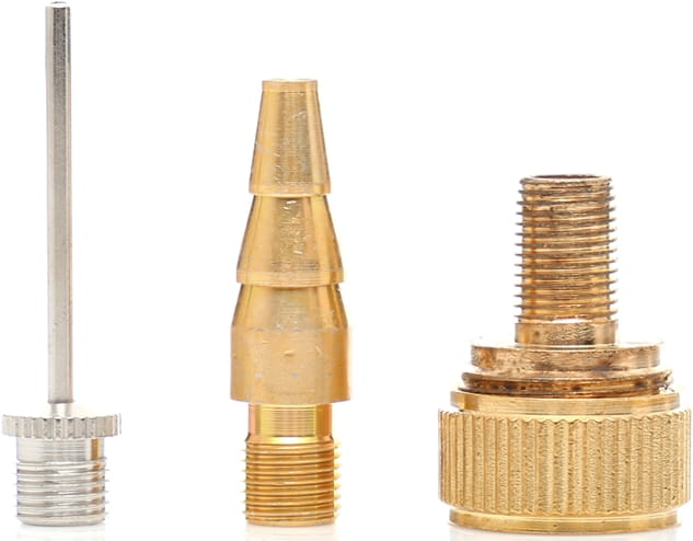Zestaw zawiera różne adaptery, które umożliwiają pompowanie opon rowerowych (wentyl Presta i Schrader), piłek sportowych oraz materacy lub innych nadmuchiwanych przedmiotów. Przed użyciem należy sprawdzić, czy dana końcówka pasuje do konkretnego rodzaju wentyla.