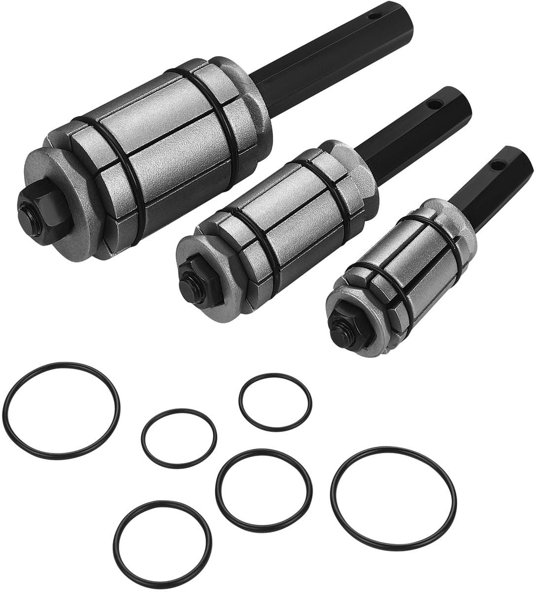 Komplet obejmuje rozpieraki w rozmiarze małym, średnim i dużym, co pozwala na pracę z rurami o różnych średnicach. Dobór właściwego narzędzia do konkretnej rury zmniejsza ryzyko uszkodzenia materiału i zapewnia równomierne rozszerzenie obwodu.