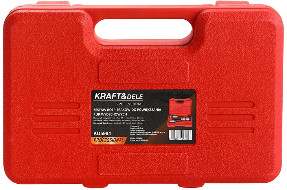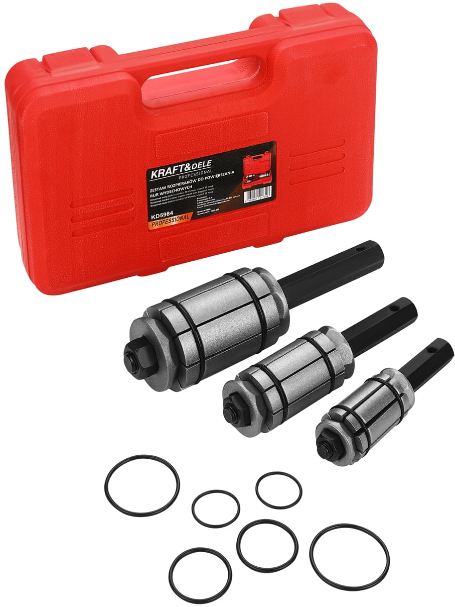Zestaw trzech rozpieraków przeznaczonych do mechanicznego rozszerzania końcówek rur wydechowych podczas montażu i napraw układów wydechowych. Narzędzie umożliwia precyzyjne dopasowanie średnicy rury bez konieczności nagrzewania materiału ani spawania, co skraca czas wykonania pracy i eliminuje potrzebę stosowania dodatkowego sprzętu.