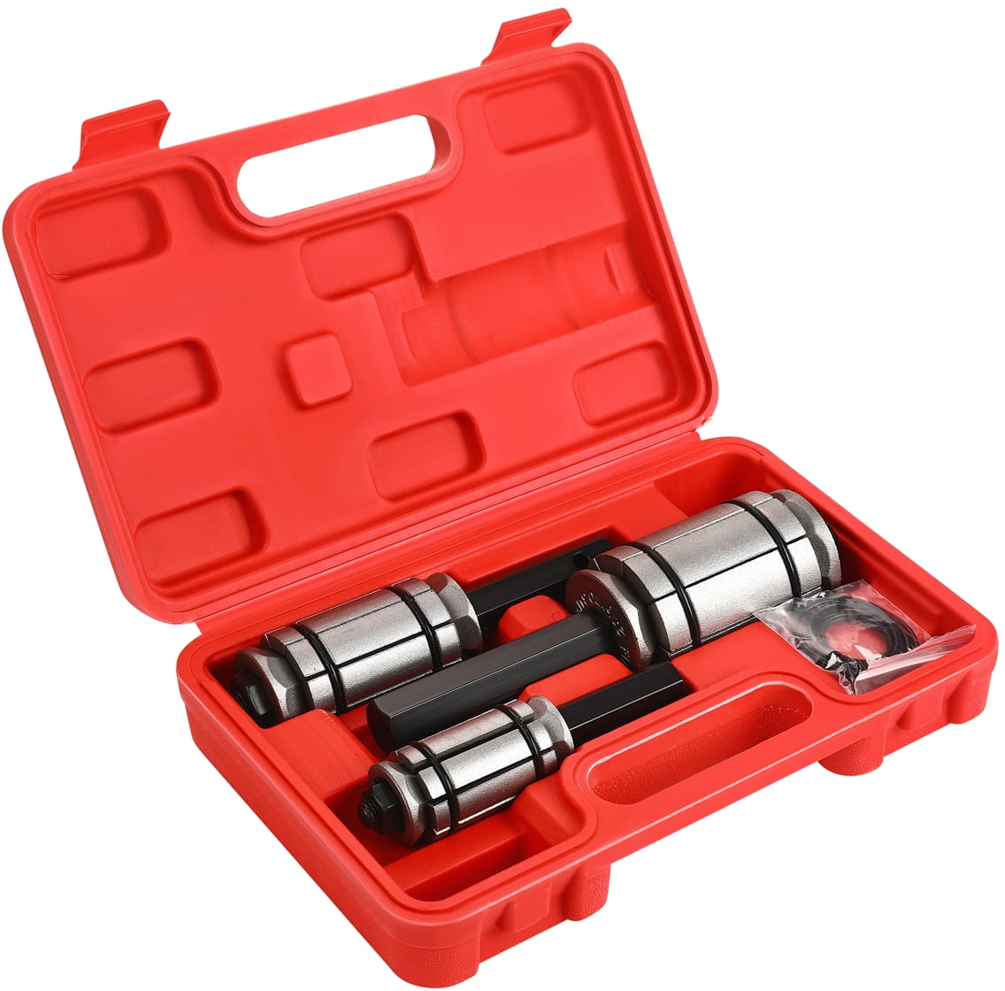 Wszystkie trzy narzędzia przechowywane są w dedykowanej walizce z wyprofilowanymi gniazdami. Takie rozwiązanie chroni rozpieraki przed uszkodzeniem, ułatwia utrzymanie porządku w warsztacie i pozwala na wygodny transport kompletu na miejsce naprawy.
