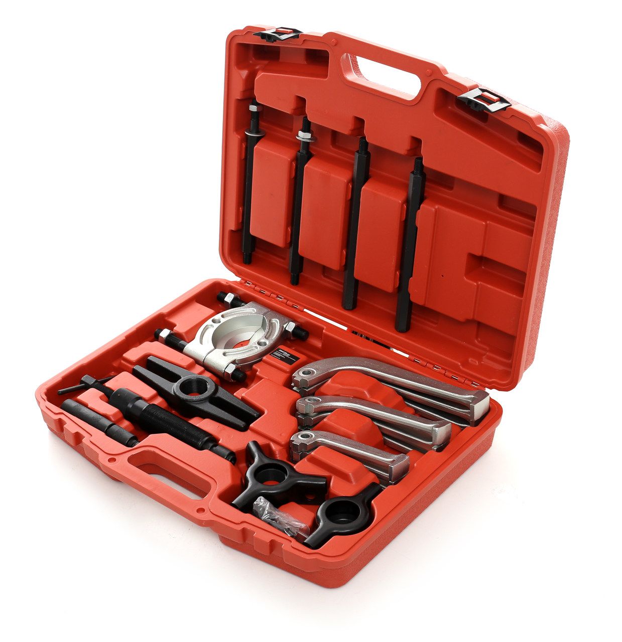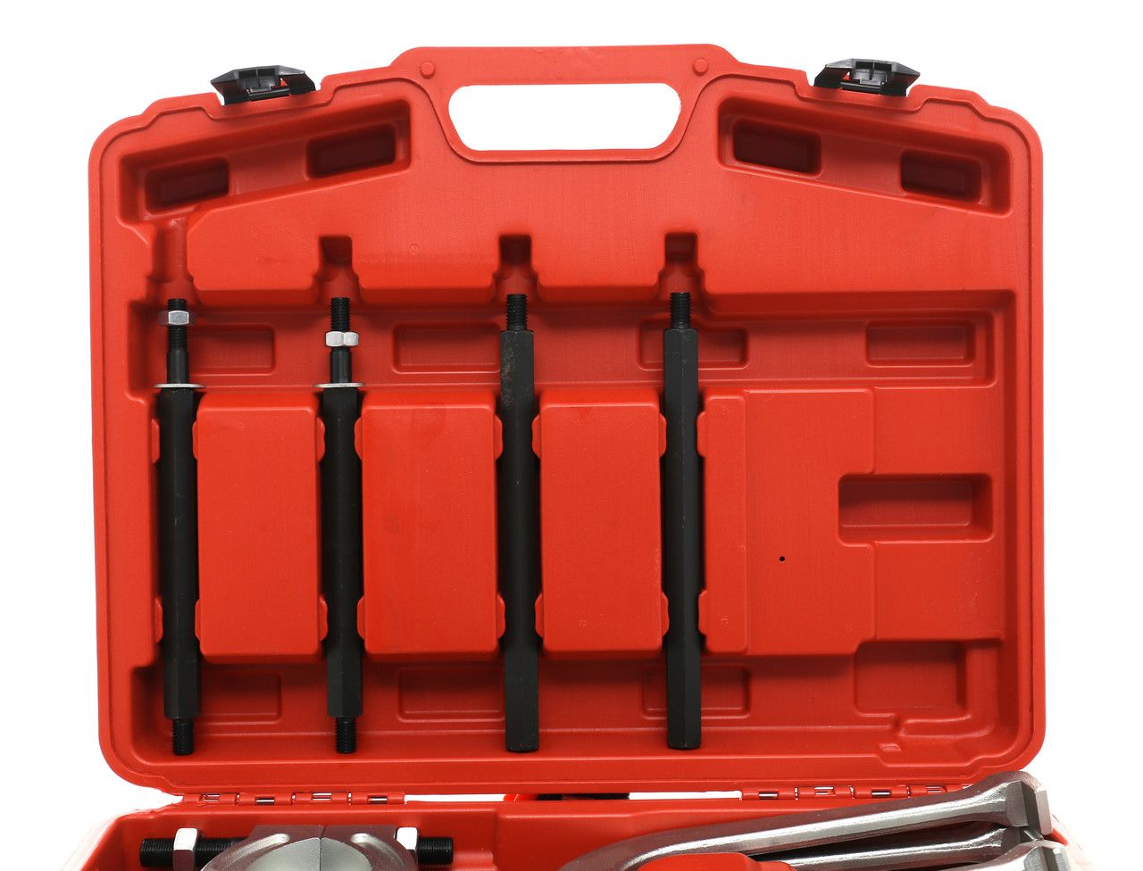 Wysoka masa zestawu wynika ze stosowania materiałów o odpowiedniej grubości ścianki i wytrzymałości. Narzędzia do ściągania łożysk pracują pod znacznym obciążeniem, dlatego masa przekłada się bezpośrednio na trwałość w eksploatacji.