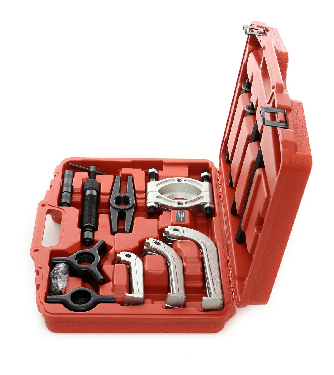 Rozbudowany komplet obejmuje ściągacze i adaptery w różnych rozmiarach, co pozwala na obsługę łożysk o zróżnicowanych średnicach bez konieczności dokupowania dodatkowych narzędzi.