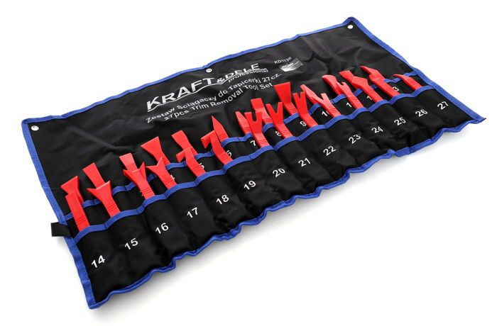 Zestaw ściągaczy do tapicerki 27 el. KD1130 jest przeznaczony do prac przy elementach wykończeniowych w samochodzie, gdzie liczy się precyzja i ograniczenie ryzyka uszkodzeń. Komplet pozwala dobrać właściwy kształt narzędzia do rodzaju spinki i miejsca montażu.