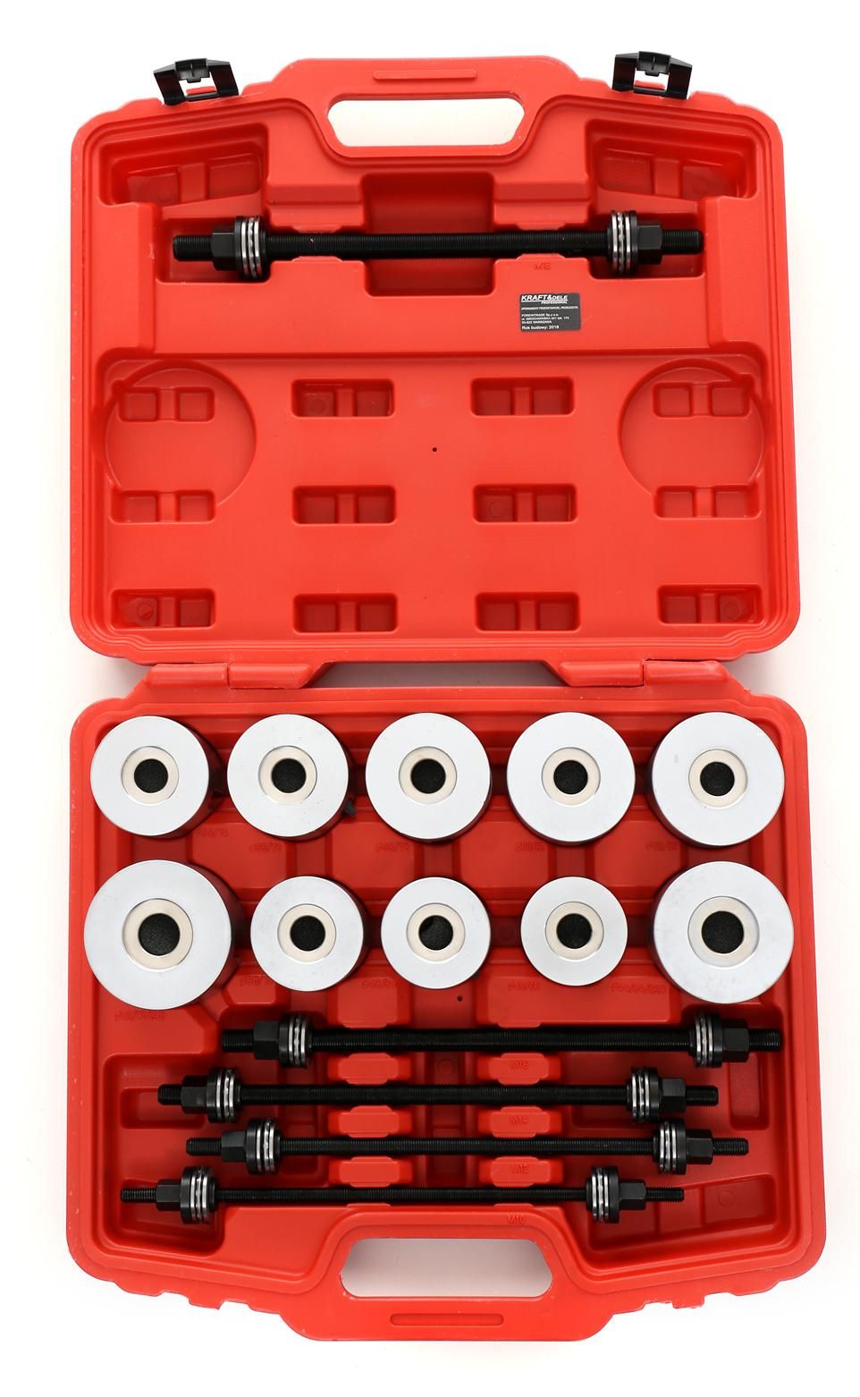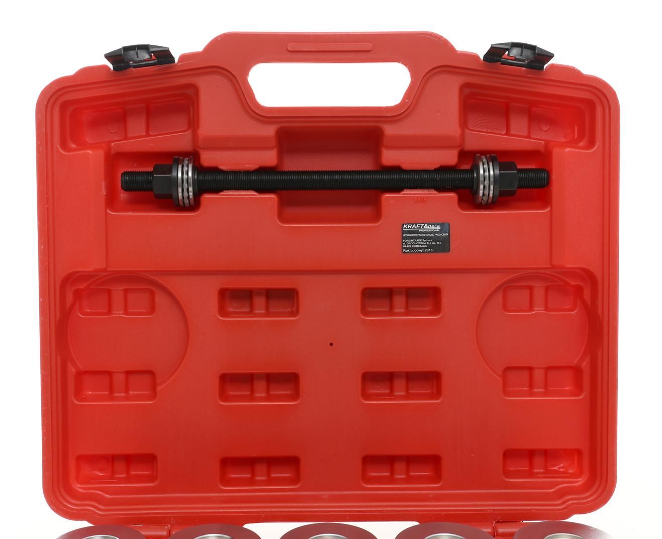 Zestaw ściągaczy do tulei wahaczy KD10517 / KRAFT&DELE to profesjonalny zestaw do montażu i demontażu łożysk oraz tulejek w zawieszeniu, przygotowany z myślą o sprawnej pracy warsztatowej. Jeśli szukasz rozwiązania, które łączy prasy śrubowe, adaptery i wygodną walizkę, model KD10517 będzie praktycznym wyborem na co dzień.