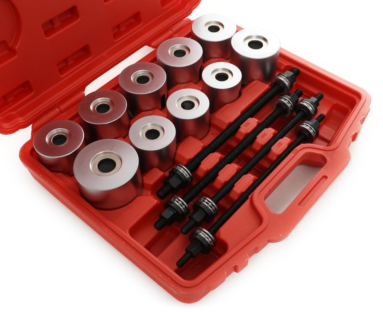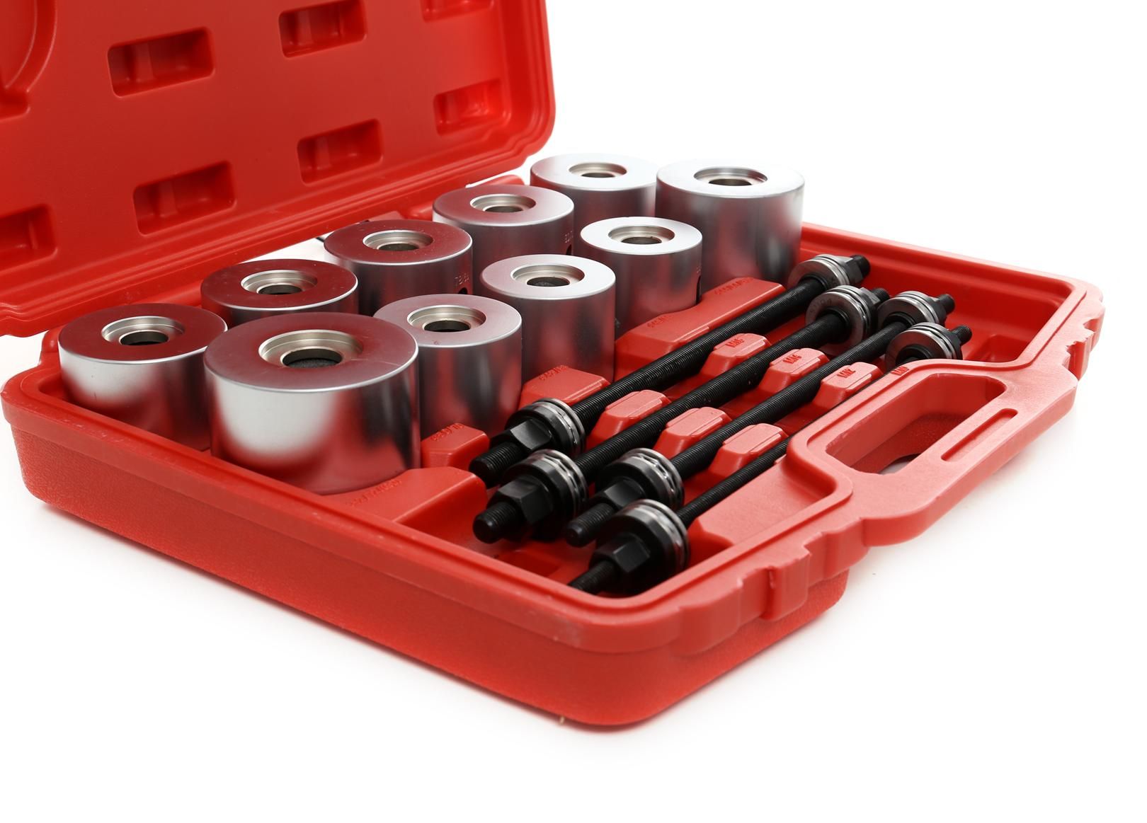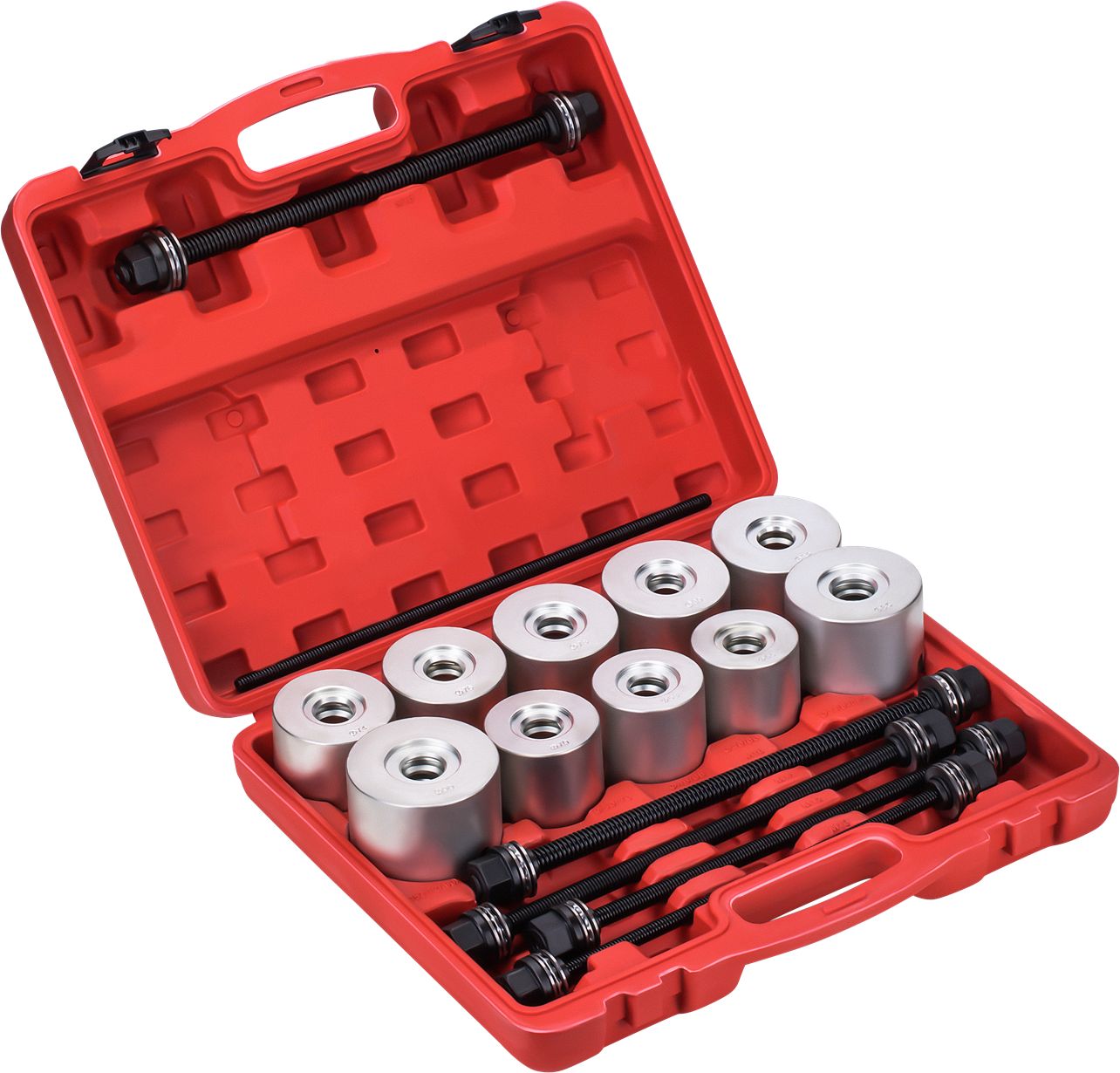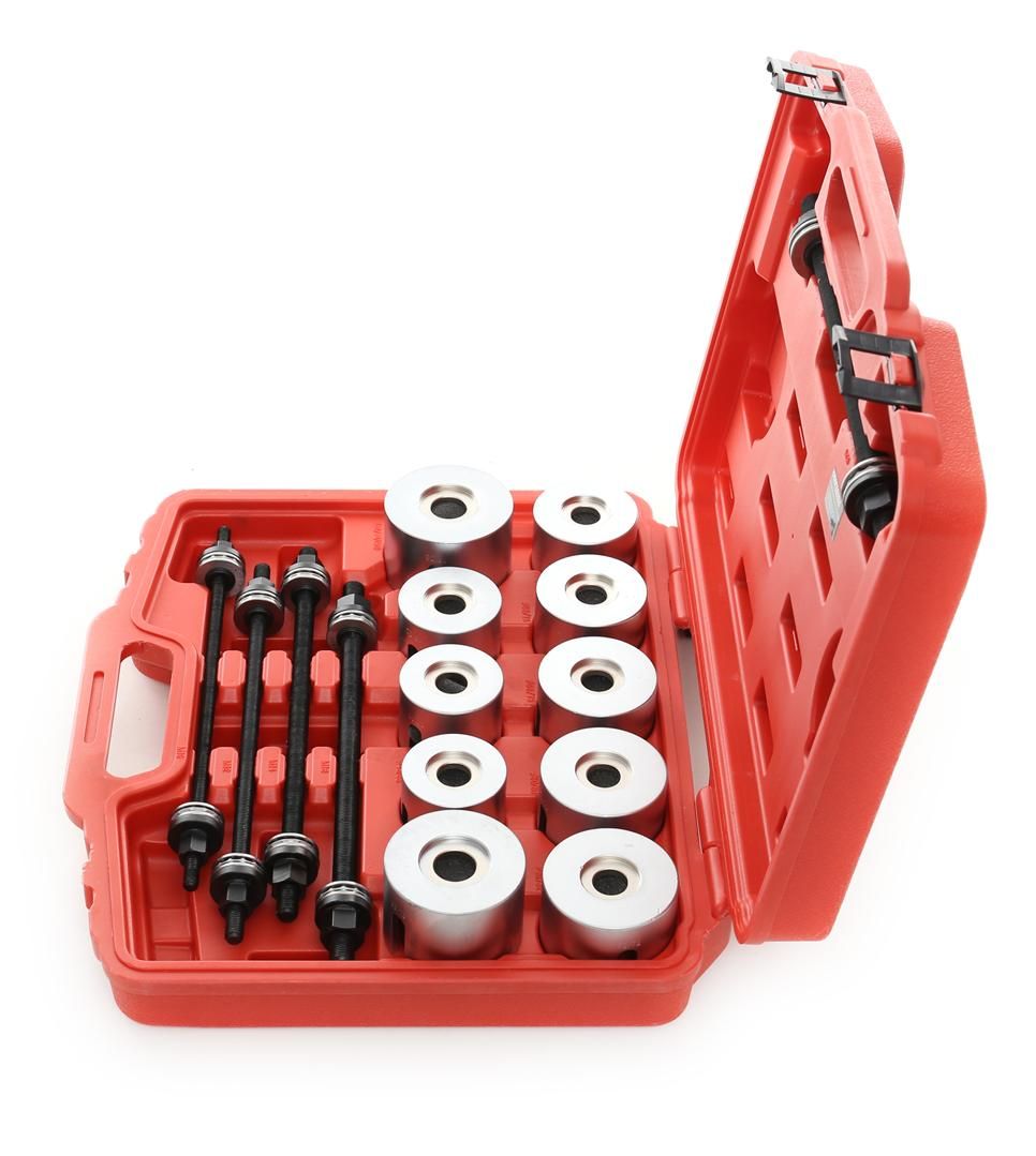 Zestaw ściągaczy do tulei wahaczy KD10517 to komplet do montażu i demontażu łożysk oraz tulejek w elementach zawieszenia pojazdów. Został przygotowany z myślą o sprawnej, precyzyjnej obsłudze w warsztacie, z wygodnym przechowywaniem w walizce.