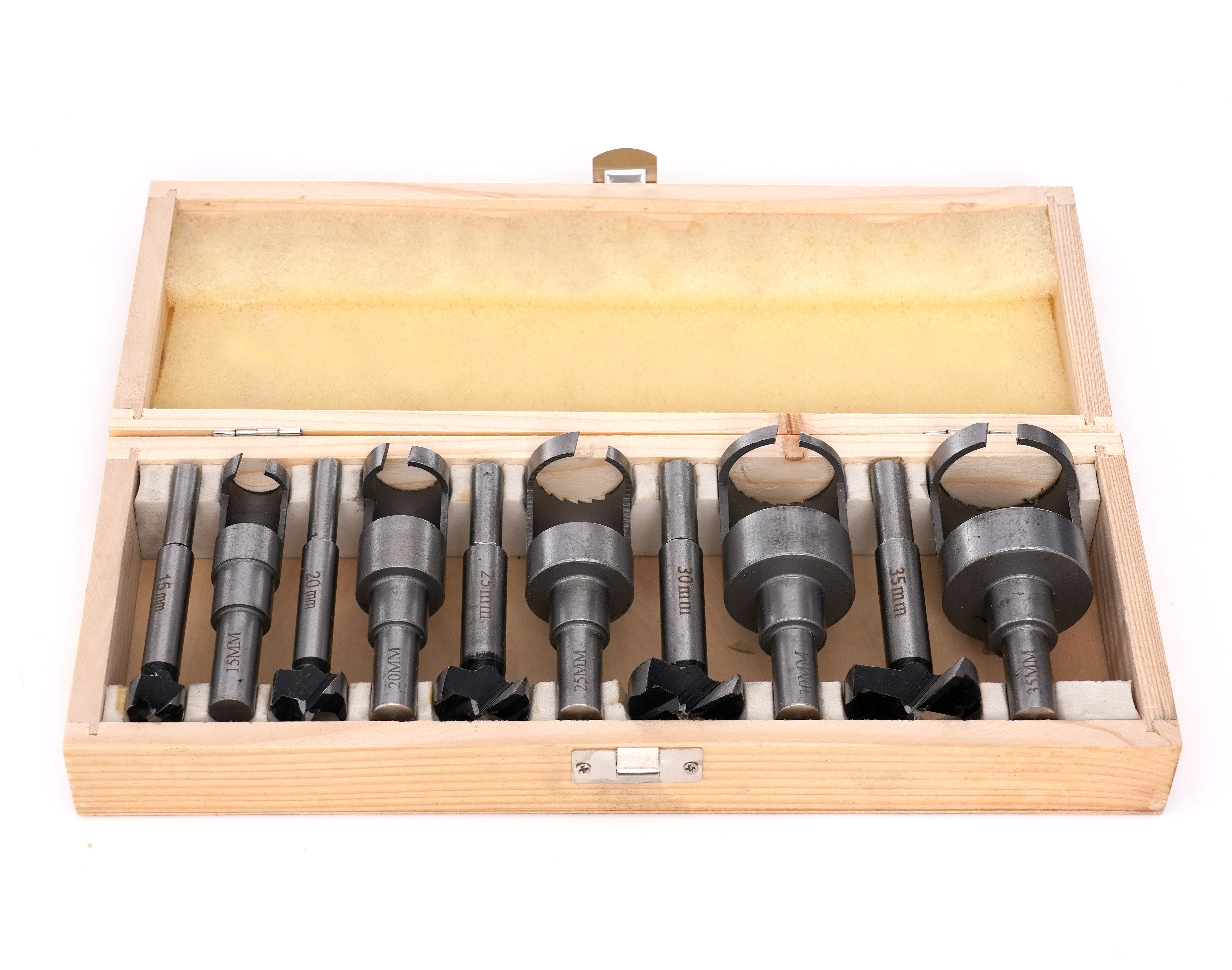 ZESTAW SĘKOWNIKÓW I FLEKOWNIKÓW KD979 to komplet do prac stolarskich i ciesielskich wykonywanych wiertarką stołową lub ręczną. Ułatwia wycinanie równych otworów w drewnie i materiałach drewnopochodnych, a także usuwanie sęków oraz maskowanie defektów dopasowanymi zaślepkami.