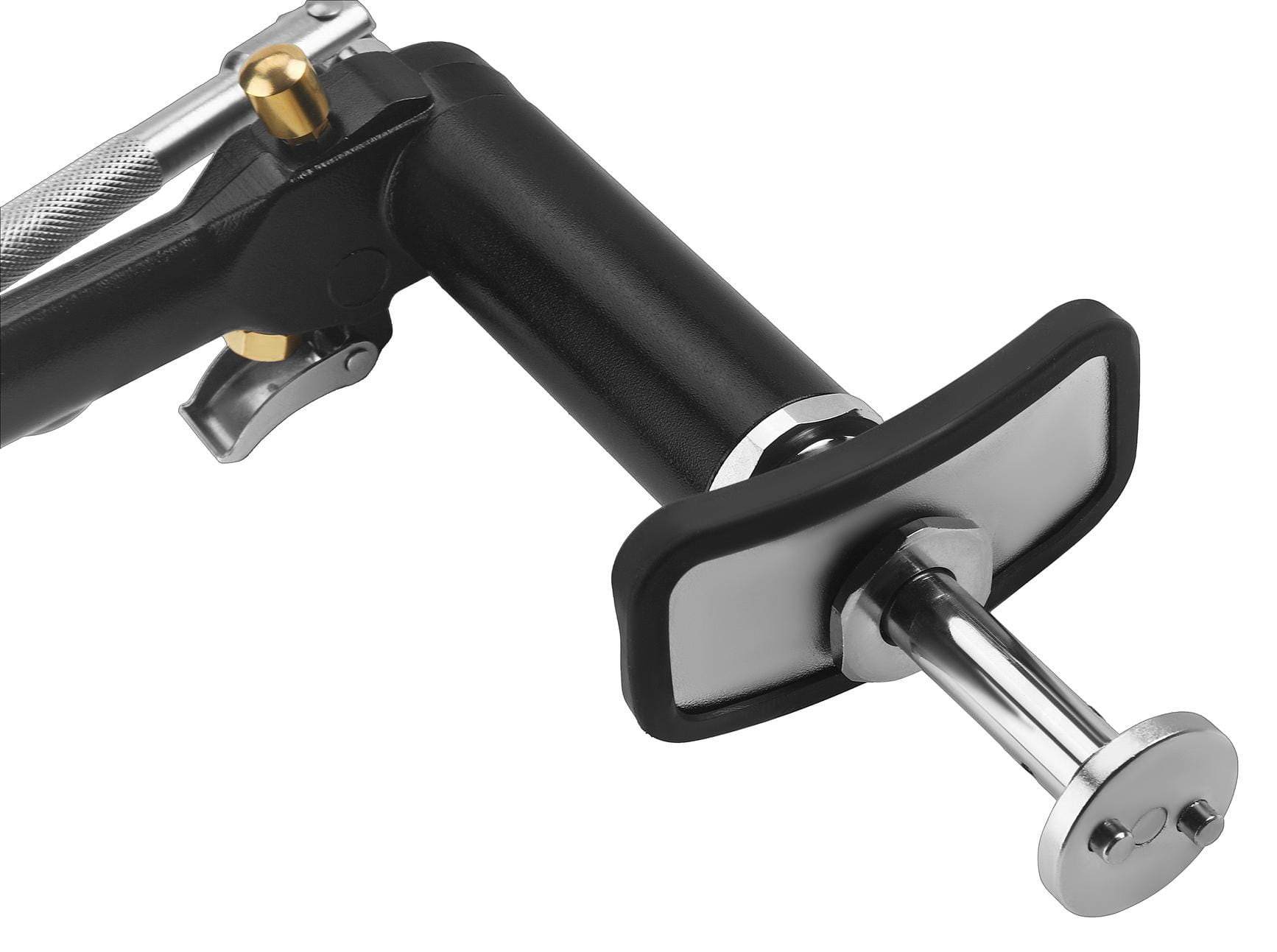 Dźwignia ręczna umożliwia obrót tłoka zarówno w prawo, jak i w lewo. Jest to niezbędne przy zaciskach tylnej osi, w których tłok musi być jednocześnie wciskany i obracany — samo wciskanie bez obrotu grozi uszkodzeniem mechanizmu regulacji.