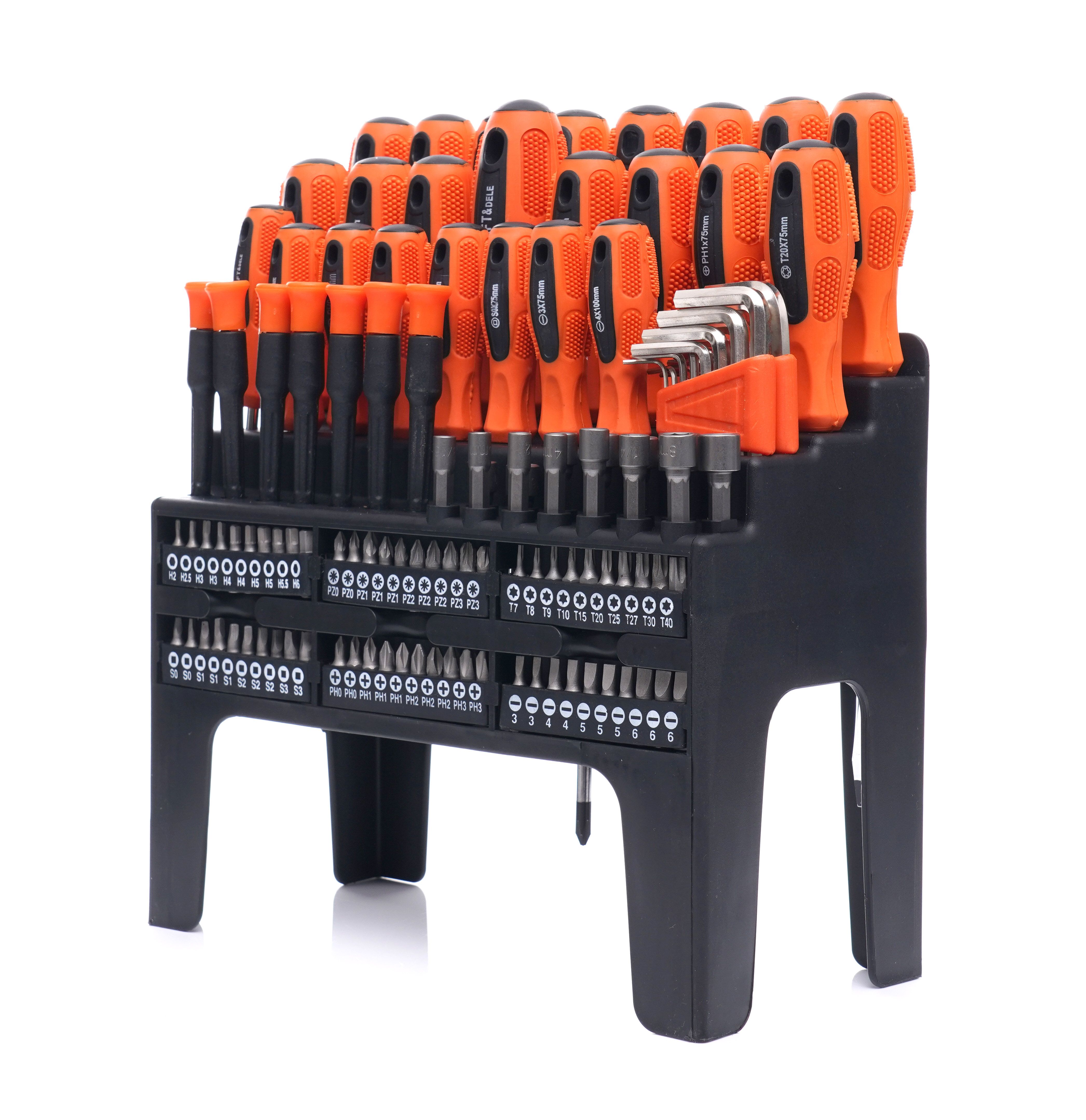 Zestaw śrubokrętów i bitów KRAFT&DELE KD10958 to praktyczny komplet do bieżących prac montażowych i serwisowych w domu, garażu oraz warsztacie. W jednym miejscu masz najczęściej używane końcówki i śrubokręty, a dołączony stojak ułatwia utrzymanie porządku.