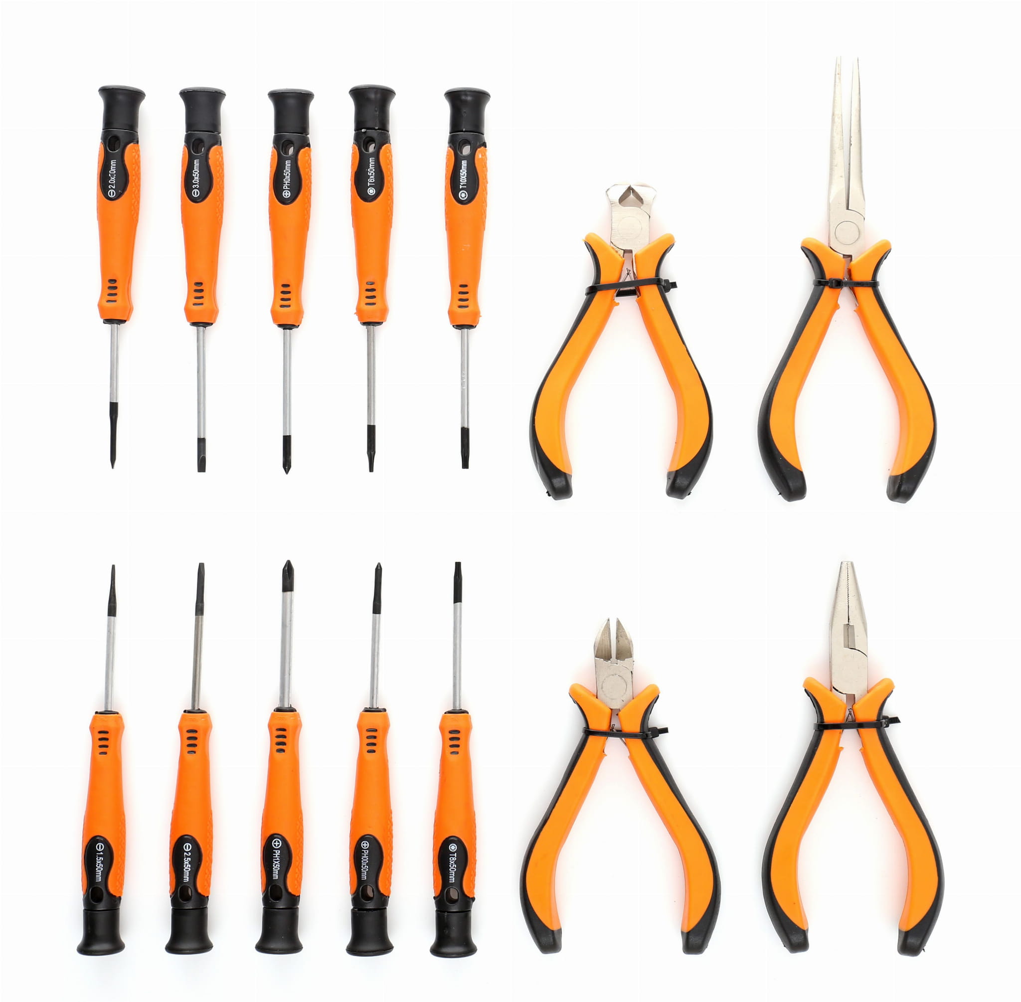 | Wkrętaki płaskie (SL) | 1,5×50 mm, 2,0×50 mm, 2,5×50 mm, 3,0×50 mm (4 szt.) |