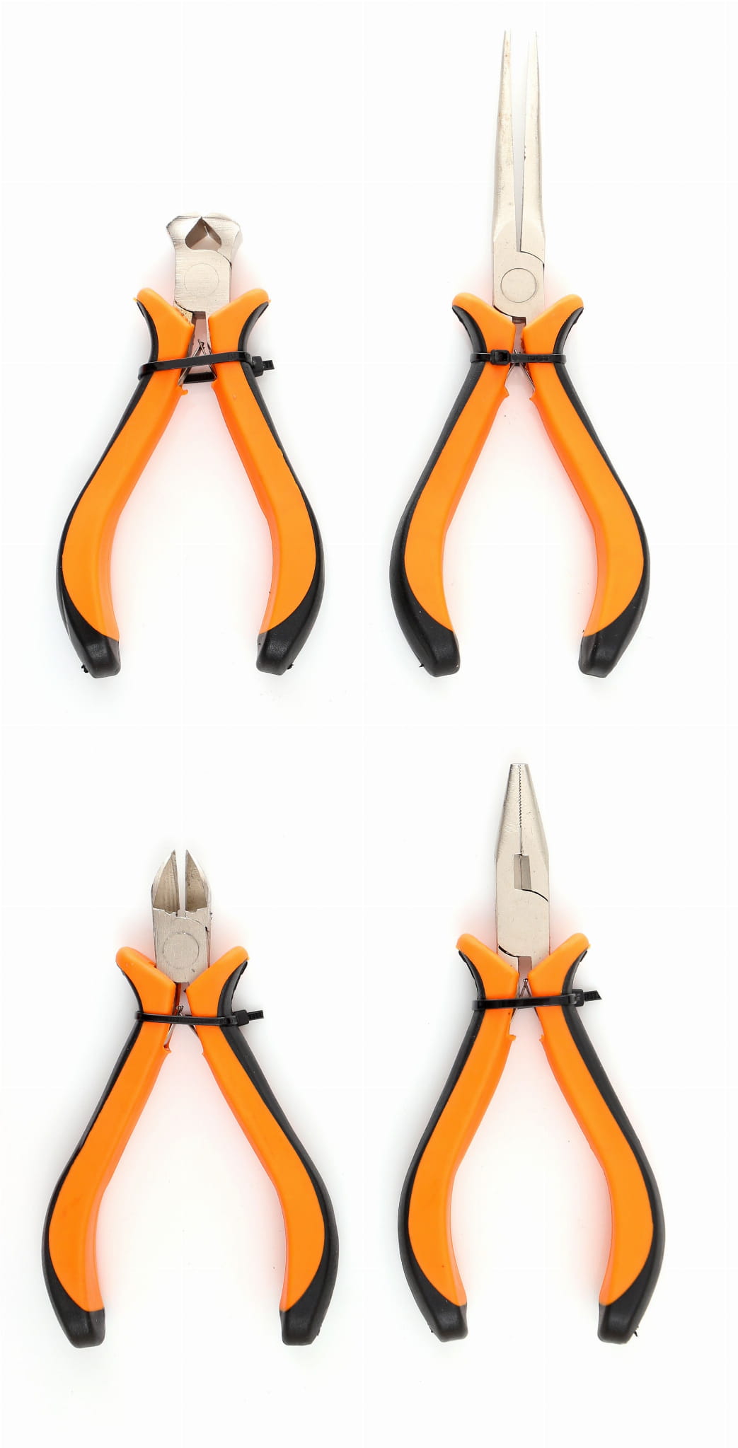 Cztery szczypce rozszerzają możliwości zestawu o chwytanie, zginanie i przycinanie elementów. Przydatne przy montażu, demontażu oraz pracach z kablami i drobnymi częściami mechanicznymi.