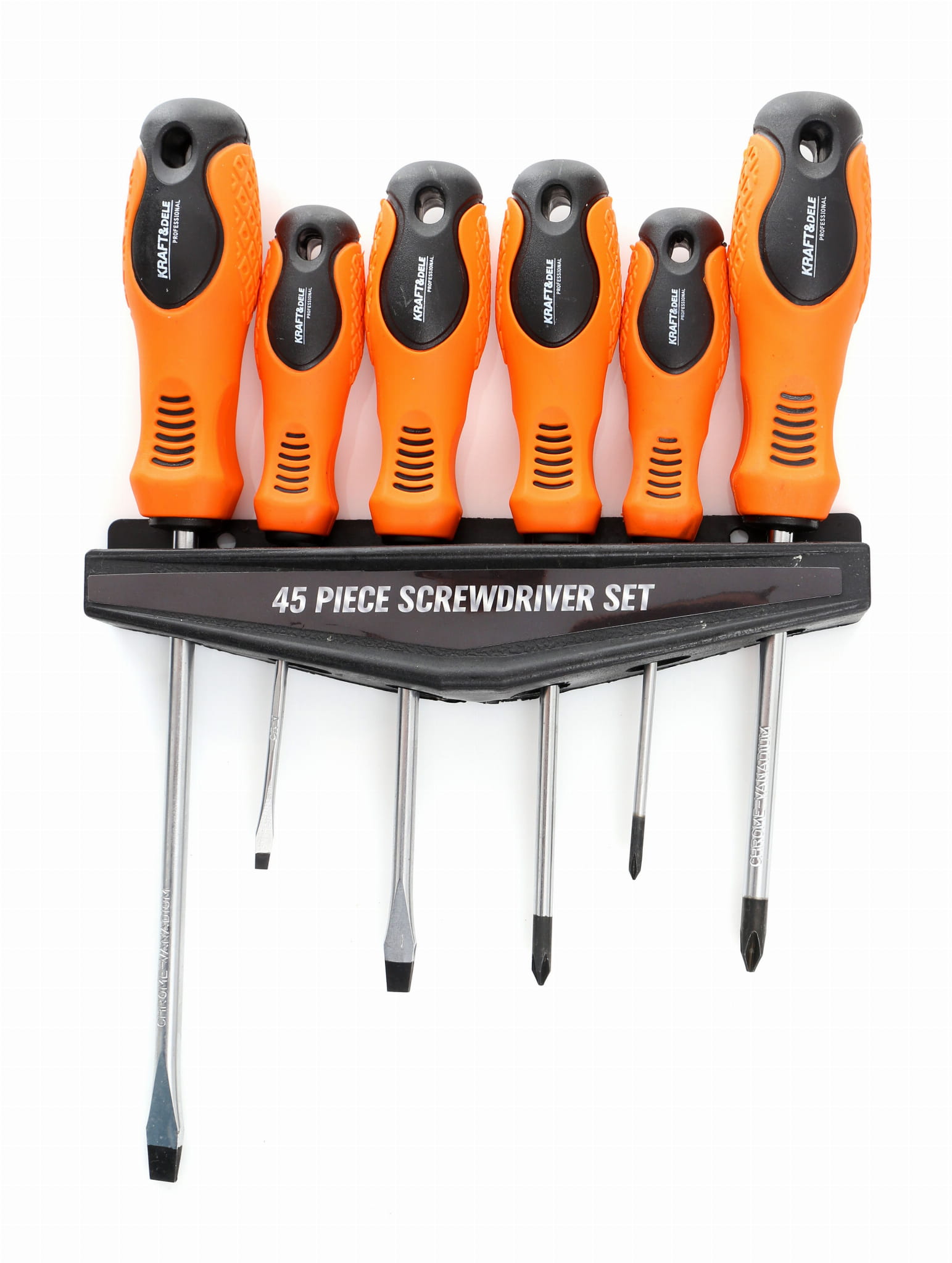 KD10893 to zestaw 45 narzędzi ręcznych obejmujący wkrętaki tradycyjne, wkrętaki precyzyjne, bity w czterech standardach, szczypce oraz uchwyt do bitów. Zestaw pokrywa najczęściej spotykane typy i rozmiary łbów śrub, co czyni go kompletnym wyposażeniem stanowiska warsztatowego lub domowego.