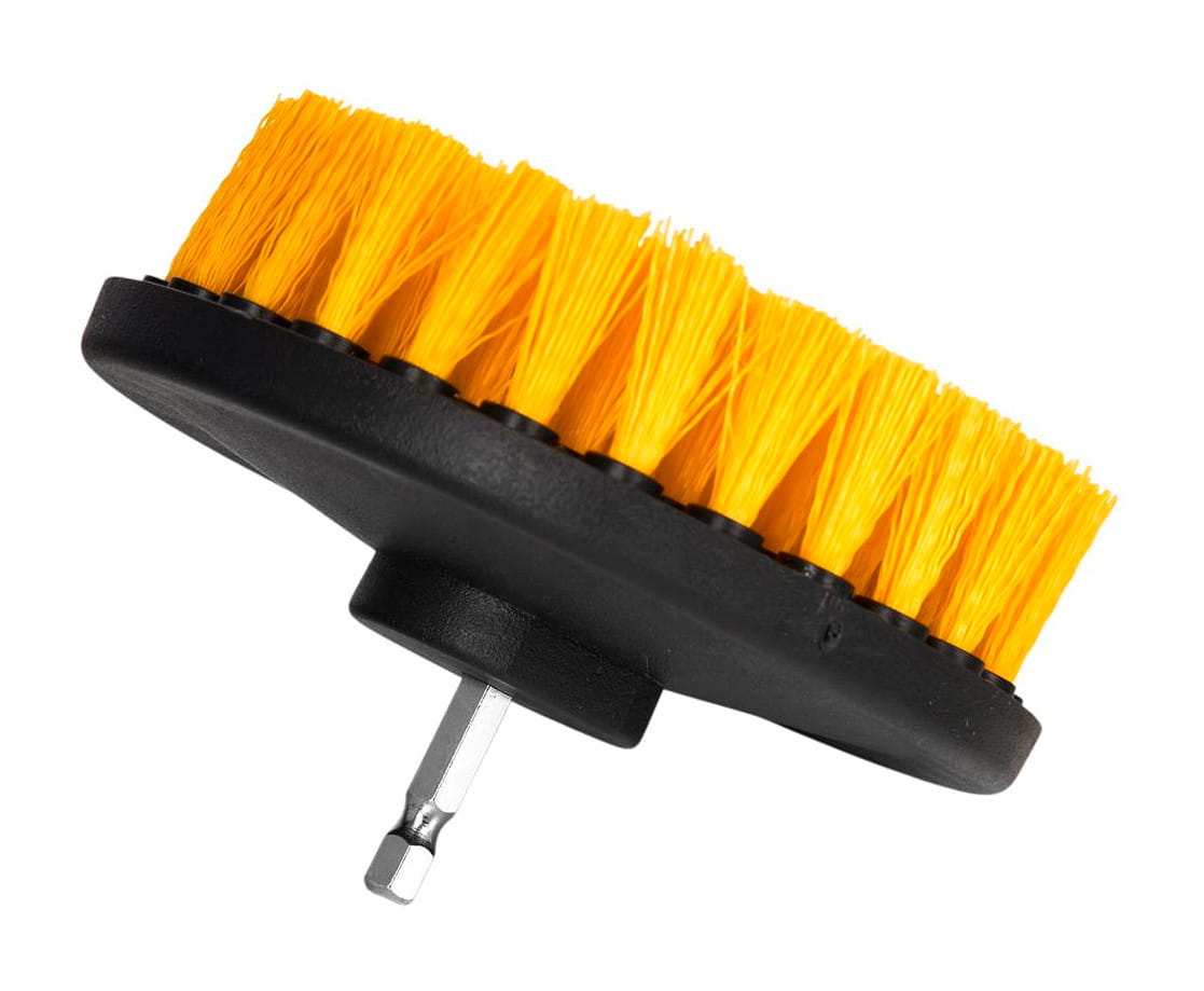 Szczotki wyposażone są w trzpień pasujący do standardowego uchwytu wiertarki lub wkrętarki. Montaż nie wymaga dodatkowych adapaterów — wystarczy zacisnąć uchwyt na trzpieniu, co skraca czas przygotowania do pracy.