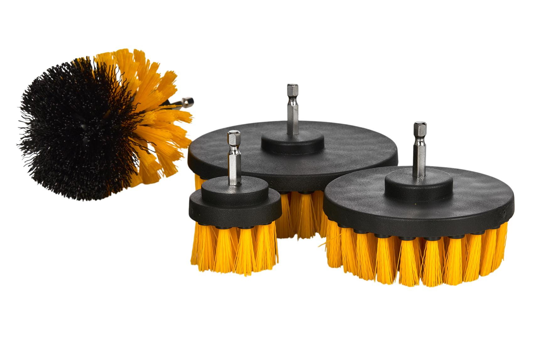 Zestaw czterech szczotek przeznaczonych do montażu w uchwycie wiertarki elektrycznej. Akcesoria służą do mechanicznego czyszczenia i usuwania powłok z różnych rodzajów powierzchni — bez konieczności stosowania chemii ani ręcznego szorowania. Zestaw zawiera kilka typów szczotek, co pozwala dopasować narzędzie do rodzaju obrabianego materiału i charakteru zabrudzenia.