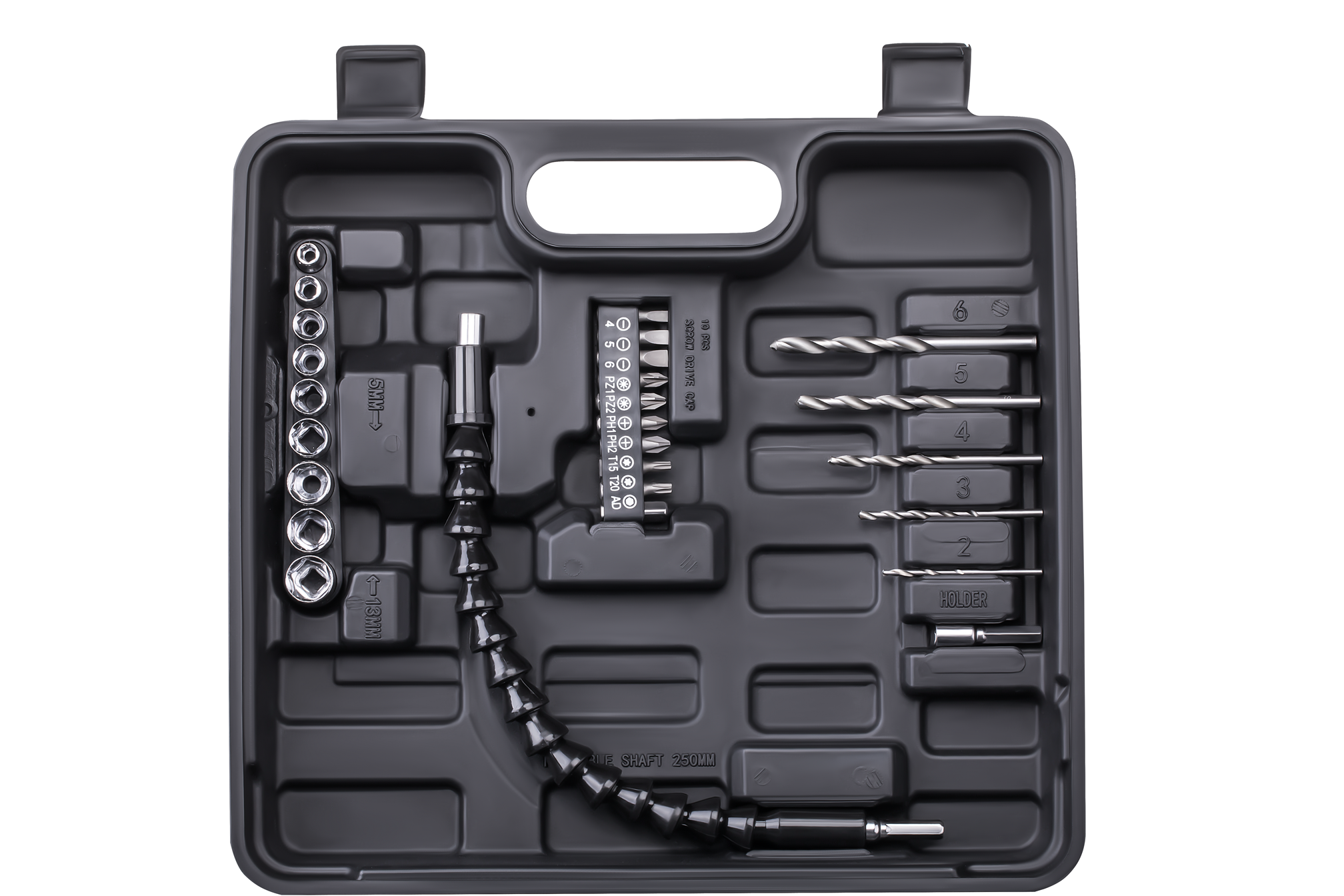 Walizka transportowa ułatwia przechowywanie i przenoszenie całego zestawu. Wszystkie elementy mają wyznaczone miejsca, co chroni je przed uszkodzeniem i pozwala szybko skompletować wyposażenie przed wyjazdem na budowę lub do klienta.
