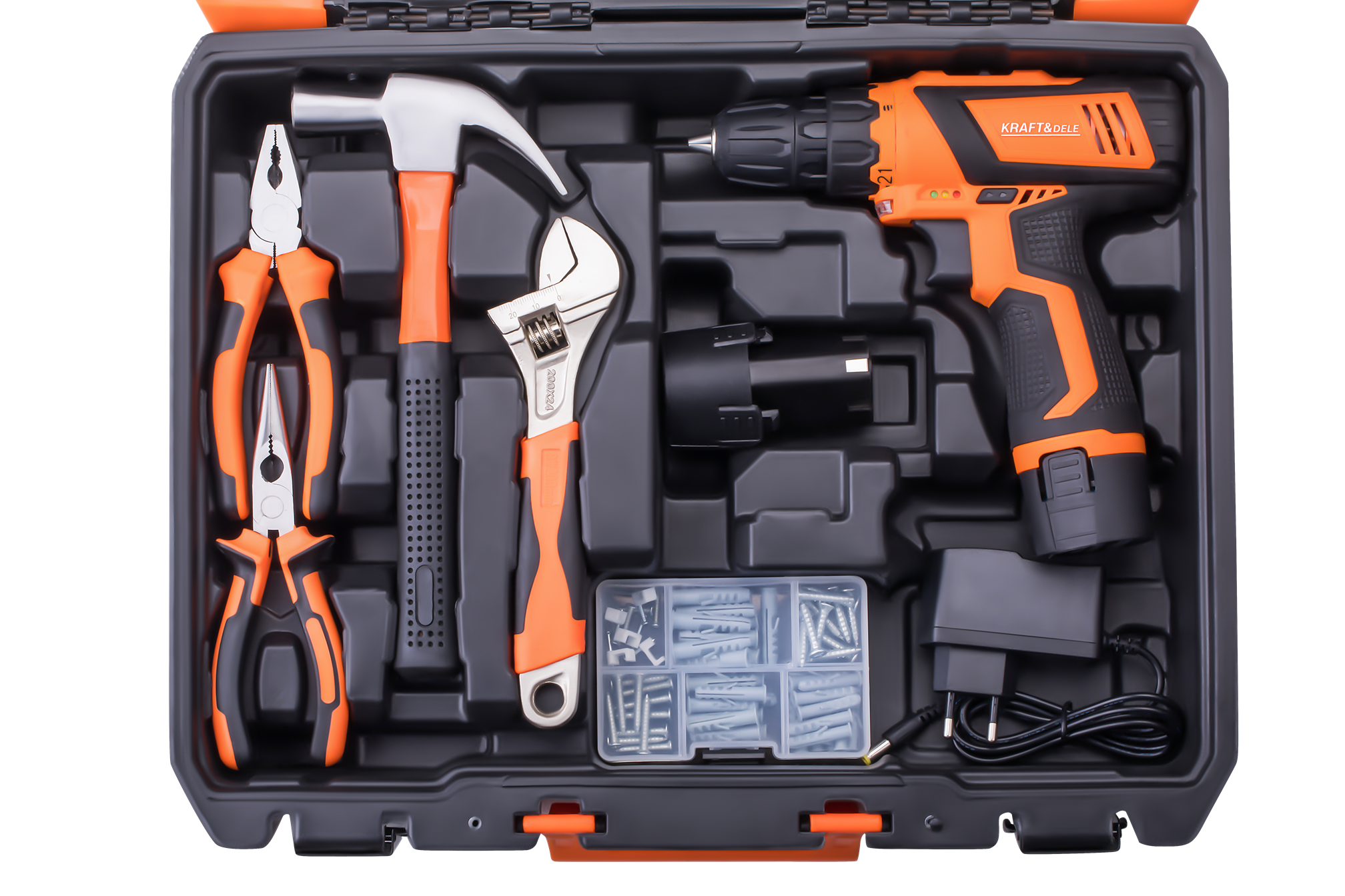 Akumulatorowa wiertarko-wkrętarka Kraft&Dele KD3357 to urządzenie dwufunkcyjne — pracuje zarówno jako wiertarka, jak i wkrętarka. Zestaw zawiera dwa akumulatory Li-Ion 18V/1,5Ah, ładowarkę, akcesoria oraz walizkę transportową, co pozwala na natychmiastowe rozpoczęcie pracy bez konieczności dokupowania elementów.