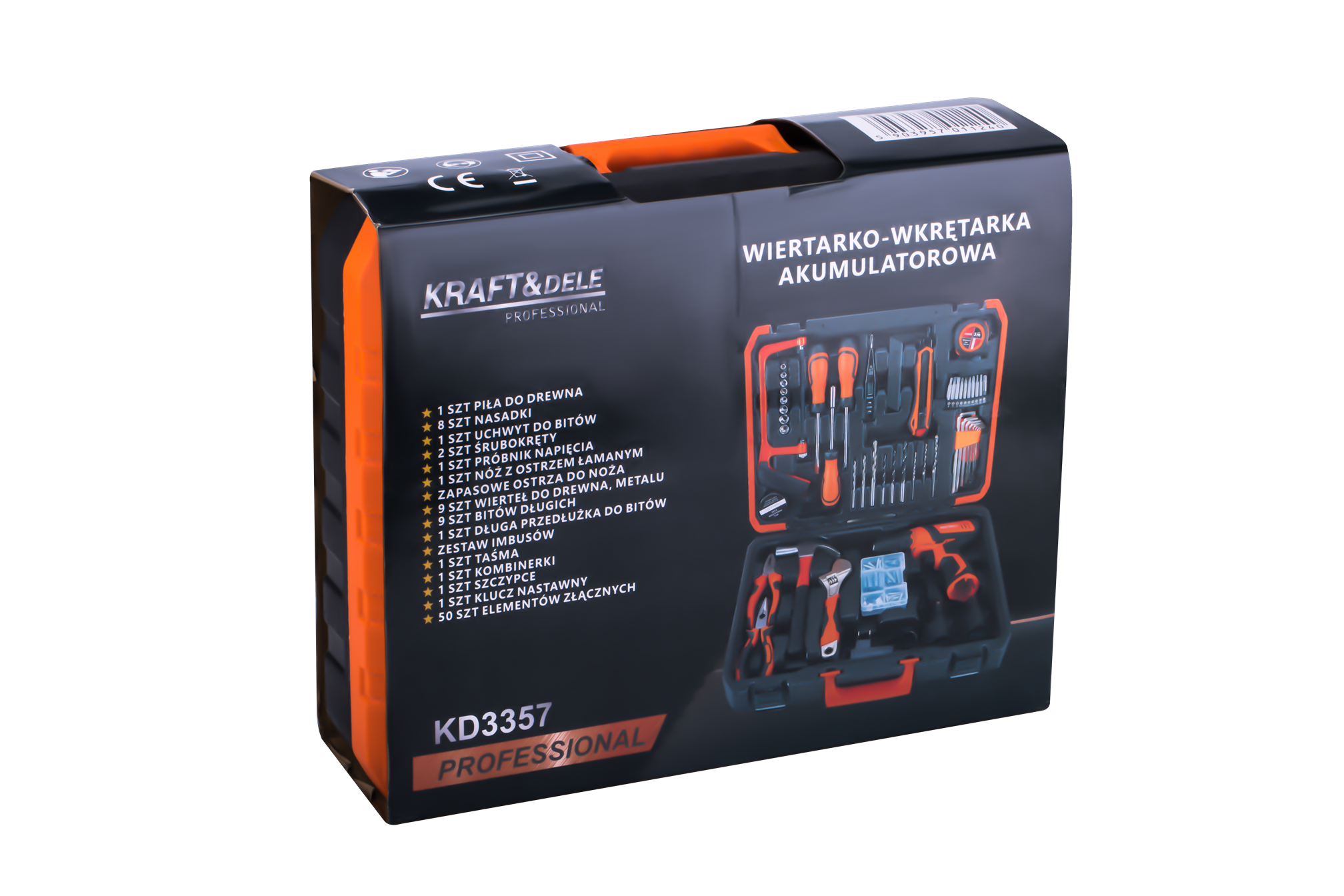Wiertarko-wkrętarka KD3357 • 2 akumulatory Li-Ion 18V/1500mAh • Ładowarka • Zestaw akcesoriów • Walizka transportowa • Instrukcja obsługi w języku polskim