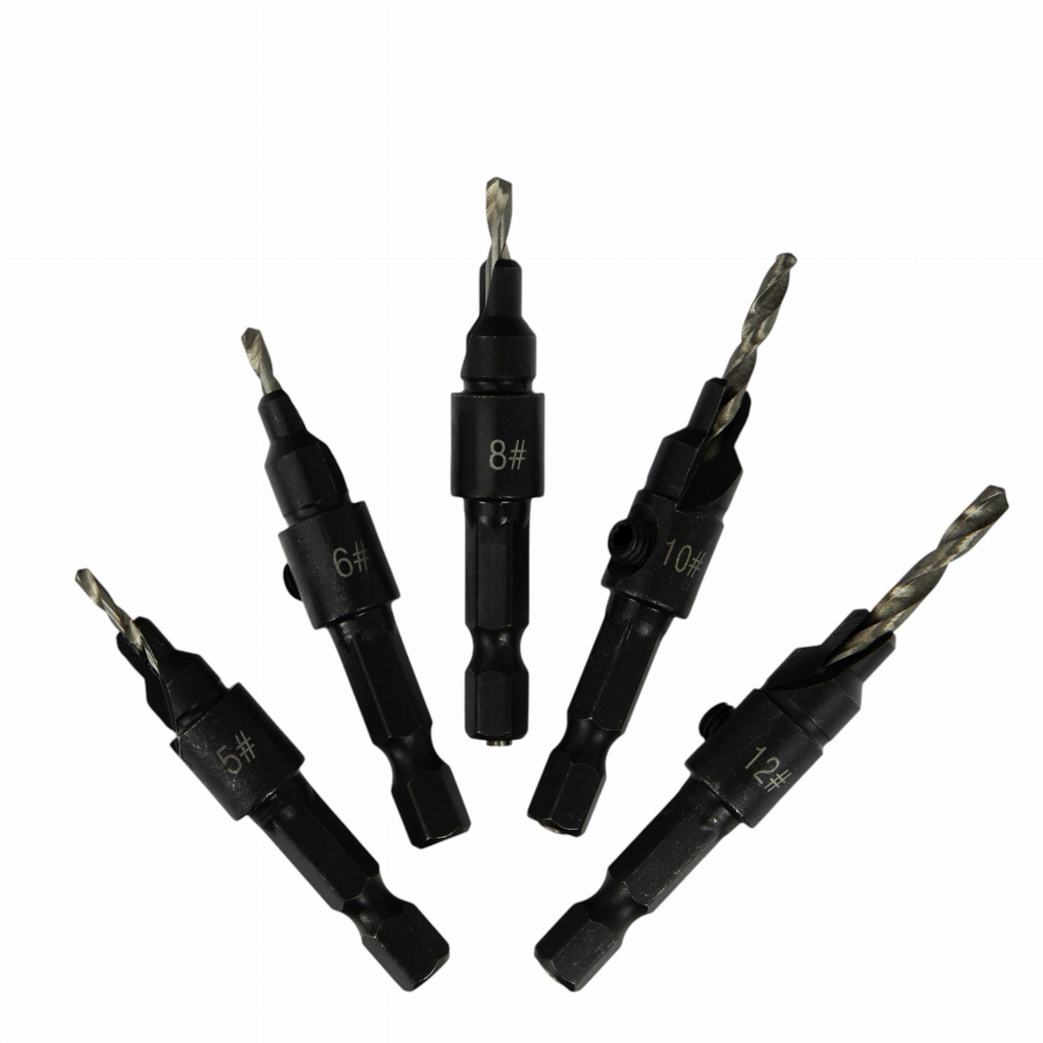Rozmiary 5, 6, 8, 10 i 12 mm pokrywają zakres konfirmatów stosowanych w typowych złączach meblowych. Zestaw umożliwia pracę z różnymi grubościami płyt wiórowych i MDF bez konieczności dokupowania pojedynczych wierteł.