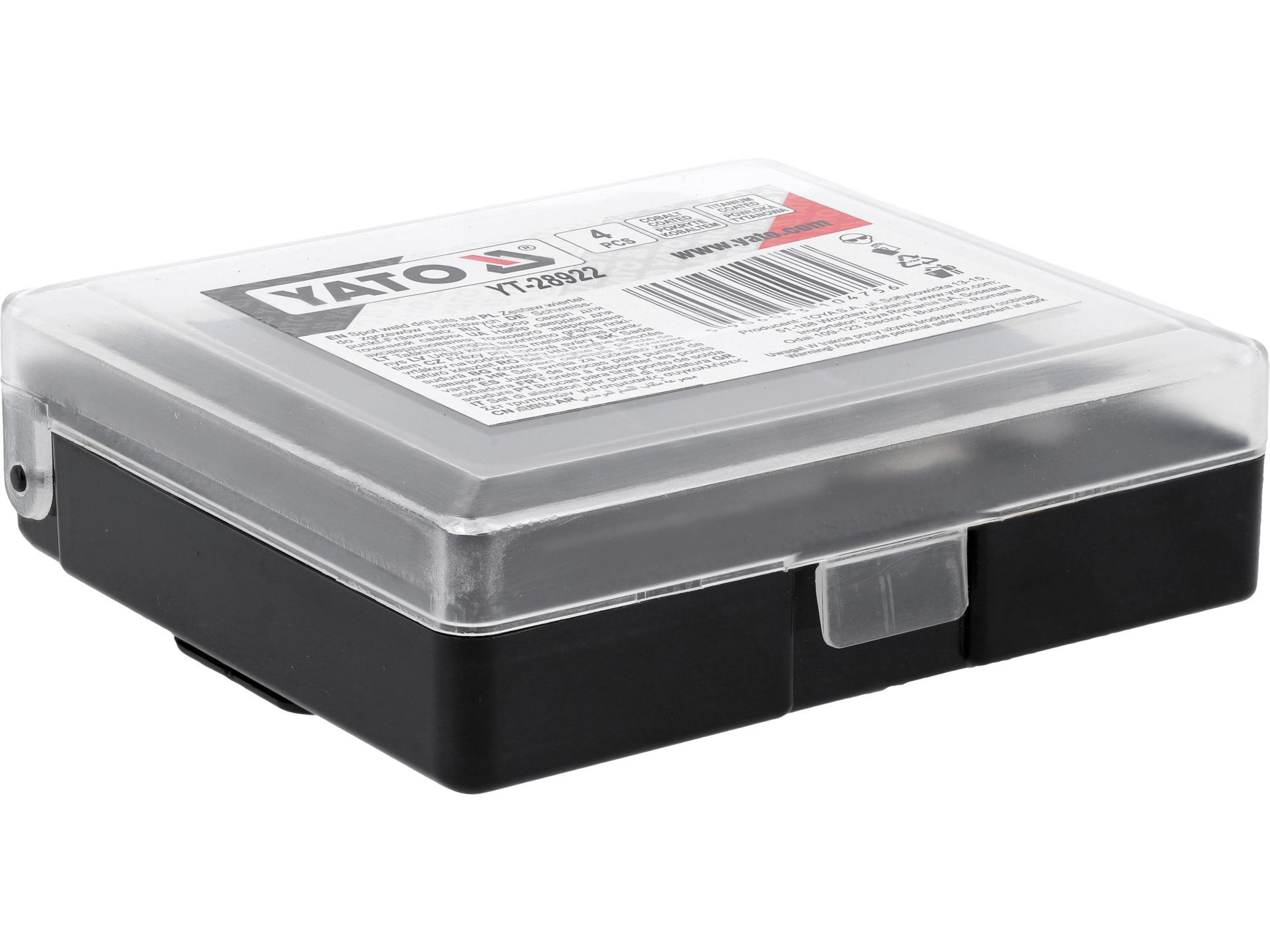 Zestaw czterech wierteł HSS z powłoką kobaltowo-tytanową przeznaczonych do usuwania zgrzewów punktowych, spawów i spoin w karoseriach samochodowych. Kompatybilny z wiertarkami elektrycznymi i pneumatycznymi.