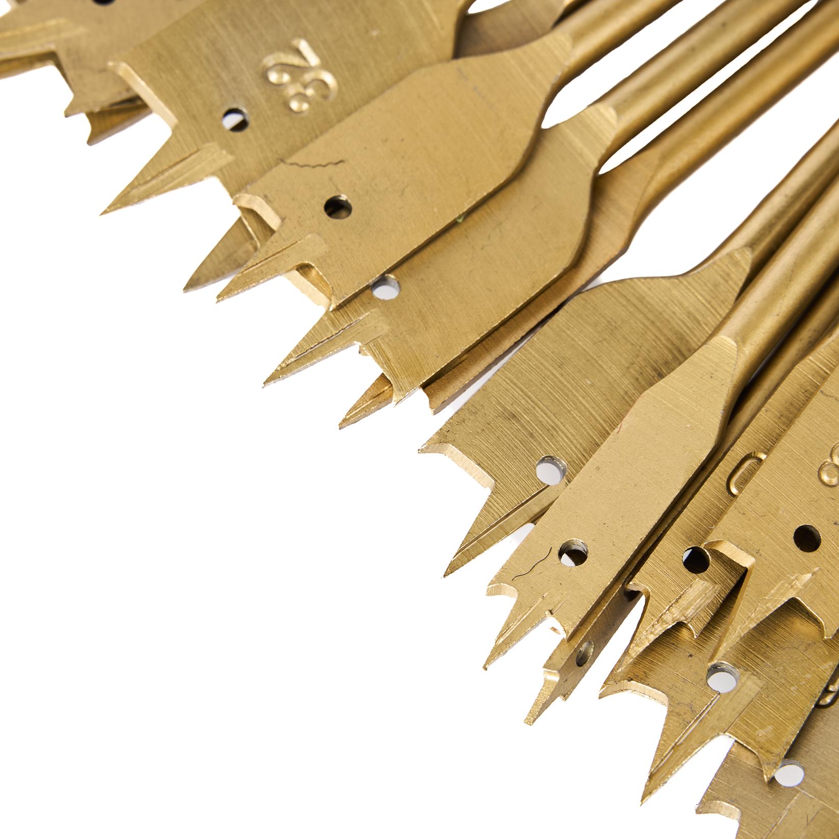 KD10637 to kompletny zestaw wierteł łopatkowych przeznaczonych do wiercenia otworów w drewnie, płycie wiórowej, MDF oraz płycie meblowej. Zestaw obejmuje 16 rozmiarów w zakresie od 6 do 38 mm, co pozwala na wykonywanie otworów pod szeroką gamę kołków, rur, kabli i okuć.