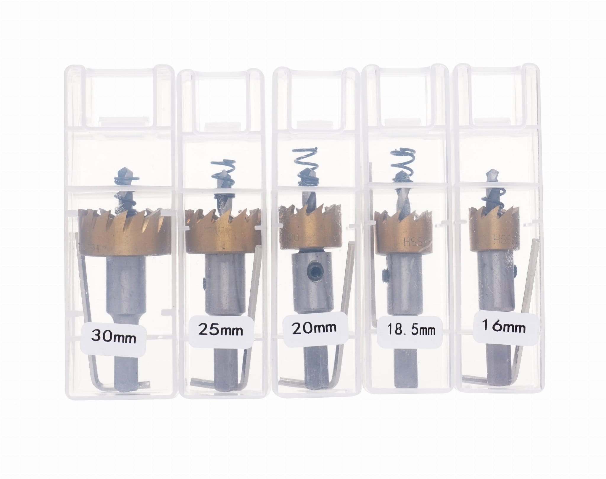 Dostępne średnice — 16, 18,5, 20, 25 i 30 mm — pokrywają zakres najczęściej stosowanych otworów montażowych, instalacyjnych i przepustowych. Eliminuje to potrzebę zakupu osobnych narzędzi do każdego wymiaru.
