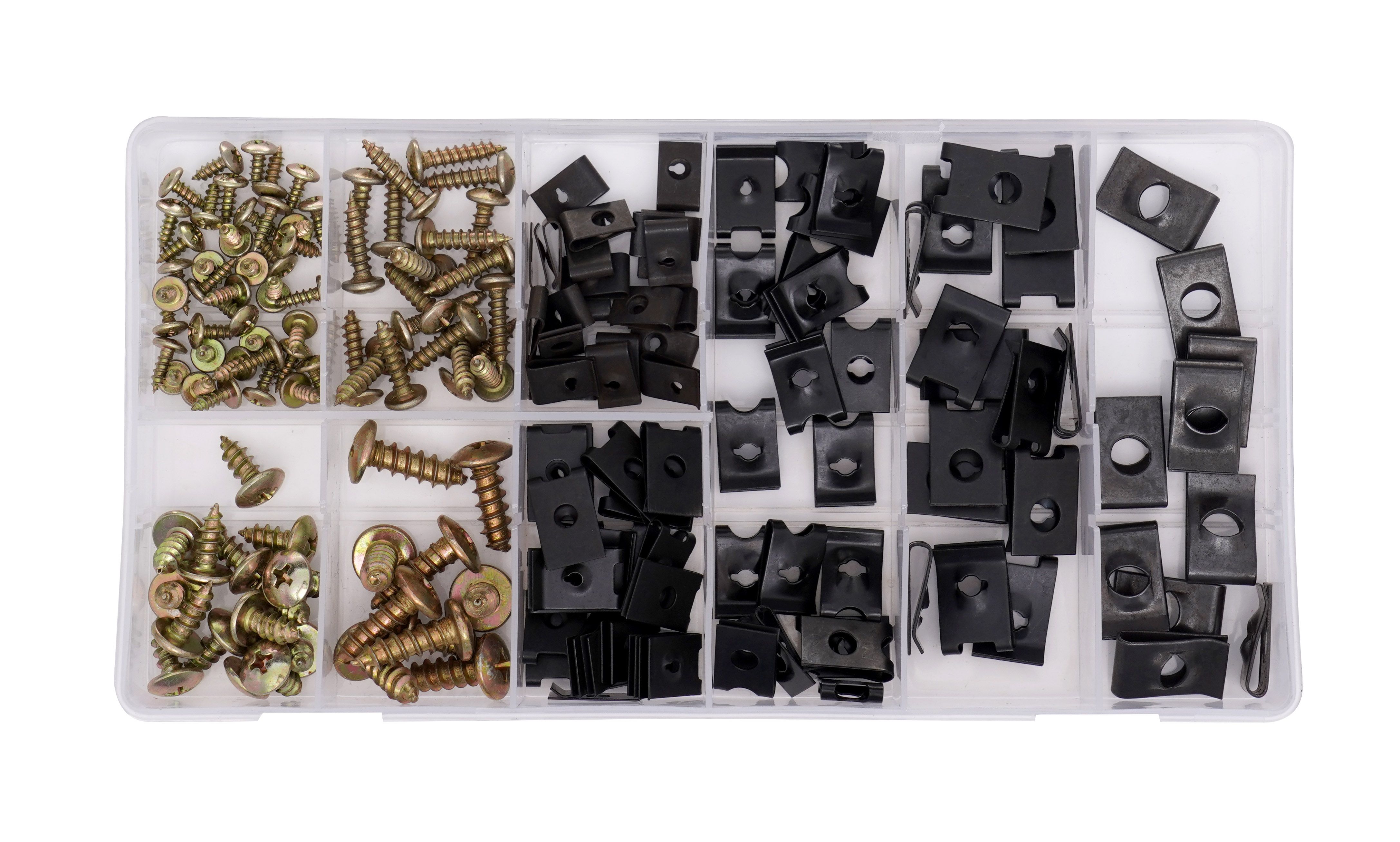 Zestaw wkrętów i podkładek do karoserii 170szt. KD10497 to praktyczny komplet do szybkich napraw i montażu elementów karoserii. Wkręty i podkładki są uporządkowane w sortowniku, dzięki czemu łatwiej dobrać właściwy rozmiar i utrzymać porządek w warsztacie.