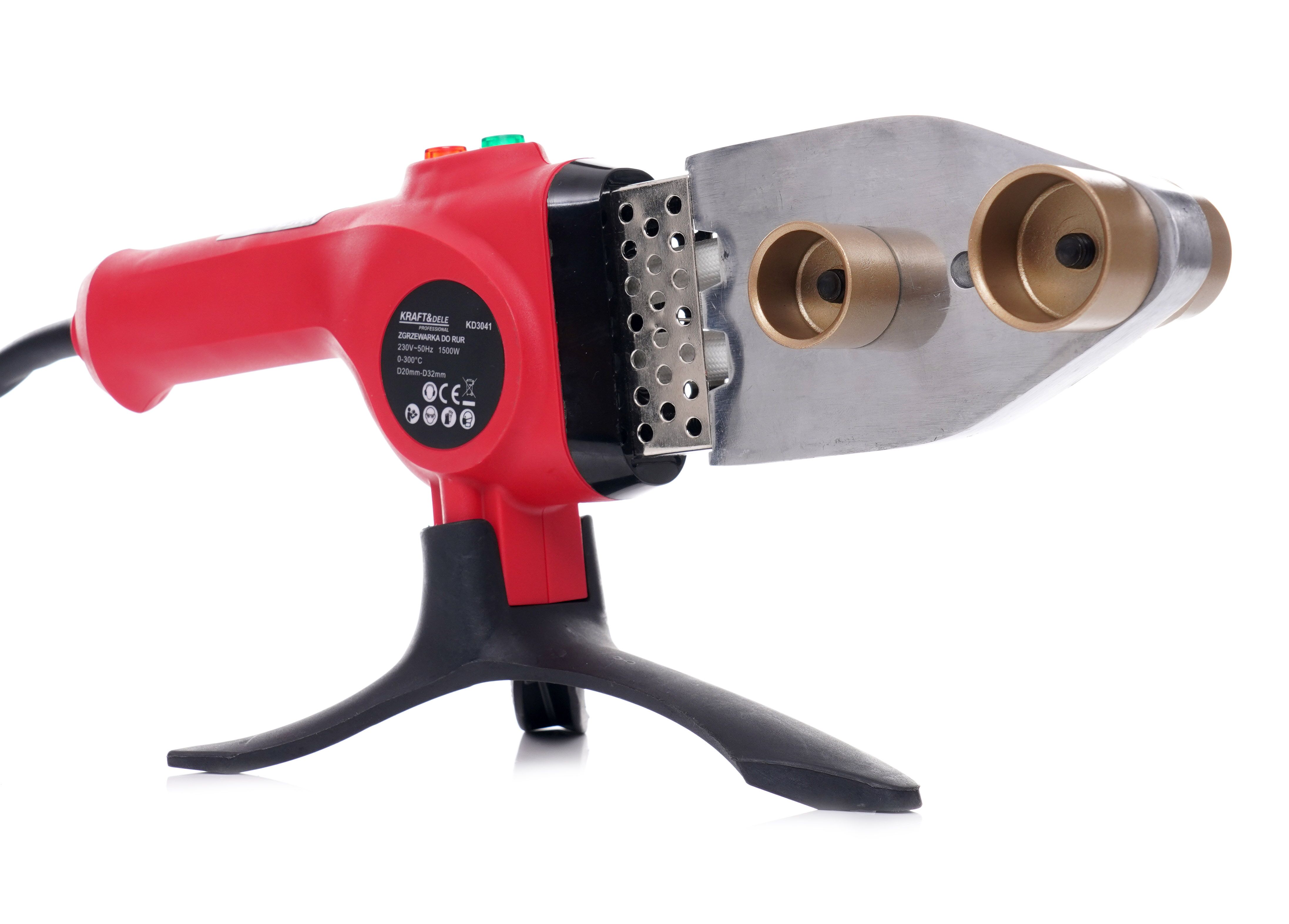 Zgrzewarka do rur 1500W D20mm-D32mm KD3041 / KRAFT&DELE to funkcjonalna zgrzewarka do rur do prac instalacyjnych z tworzyw termoplastycznych. Model KD3041 łączy prostą obsługę, teflonowe matryce i praktyczne wyposażenie, dzięki czemu jest dobrym wyborem do montażu oraz serwisu instalacji wodnych i CO.