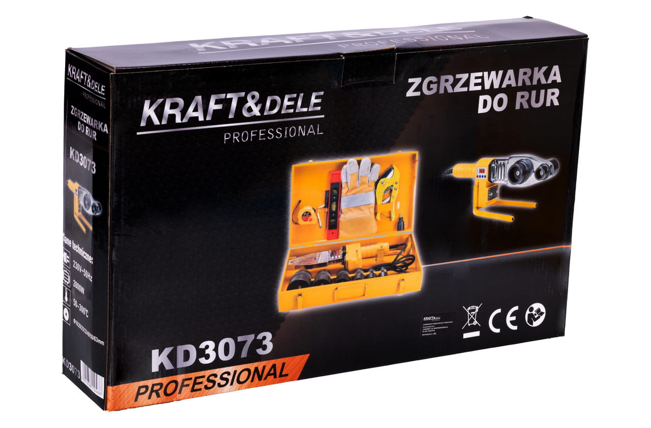 Zgrzewarka polifuzjna KD3073 przeznaczona jest do łączenia rur i kształtek wykonanych z polietylenu (PE), polipropylenu (PP) oraz polibutenu (PB) w instalacjach wodnych i grzewczych. Urządzenie pracuje metodą zgrzewania mufowego — jednoczesnego nagrzewania zewnętrznej powierzchni rury i wewnętrznej powierzchni kształtki za pomocą wymienianych nasadek grzejnych.